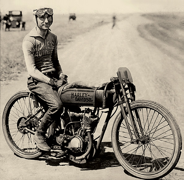 Какова скорость велосипеда? На это трудно дать общий ответ; можно сказать, что она зависит от физической силы едущего, от состояния дороги и ветра. На хорошем велосипедном треке в безветренную погоду хороший гонщик на хорошей машине может развить до 70—80 км в час, правда, ненадолго. Недавно, 19 октября 1924 г., французскому гонщику Брюнье удалось достичь скорости 112 км в час, скорость, которая может считаться рекордной. Велосипед с лёгким бензиновым мотором, т. е. мотоциклет, особенно усовершенствовавшийся после мировой войны, занял теперь также не последнее место среди современных средств передвижения благодаря своей быстроте и надёжности. Скорость мотоциклета на хорошей дороге может доходить до 100 км и больше. Рекордной является скорость в 204,5 км в час, достигнутая в конце прошлого года американцем Фредом Лудлов. Он показан здесь со своим мотоциклетом.
