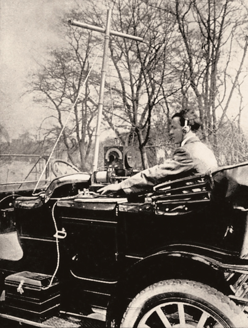 По сообщению английских газет, в Лондоне вполне успешно произведено испытание с новым радиотелефонным аппаратом, установленным в обыкновенном автомобиле (см. снимок). Дальность такого аппарата распространяется на радиус около 100 миль, а энергия получается от обыкновенных автомобильных аккумуляторов.