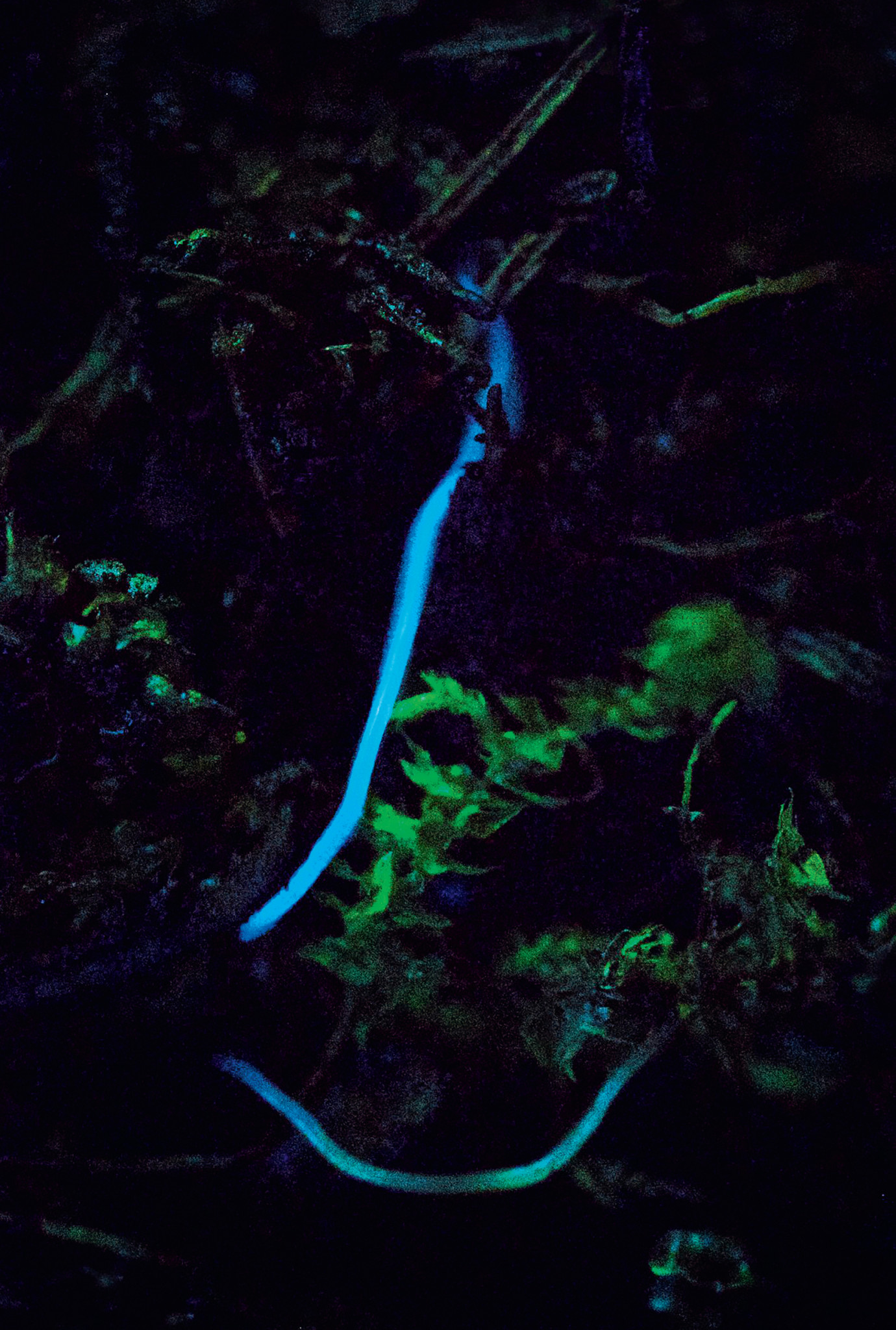 Свечение фридериции Fridericia heliota в таёжной почве. Фото Натальи Родионовой и Валентина Петушкова