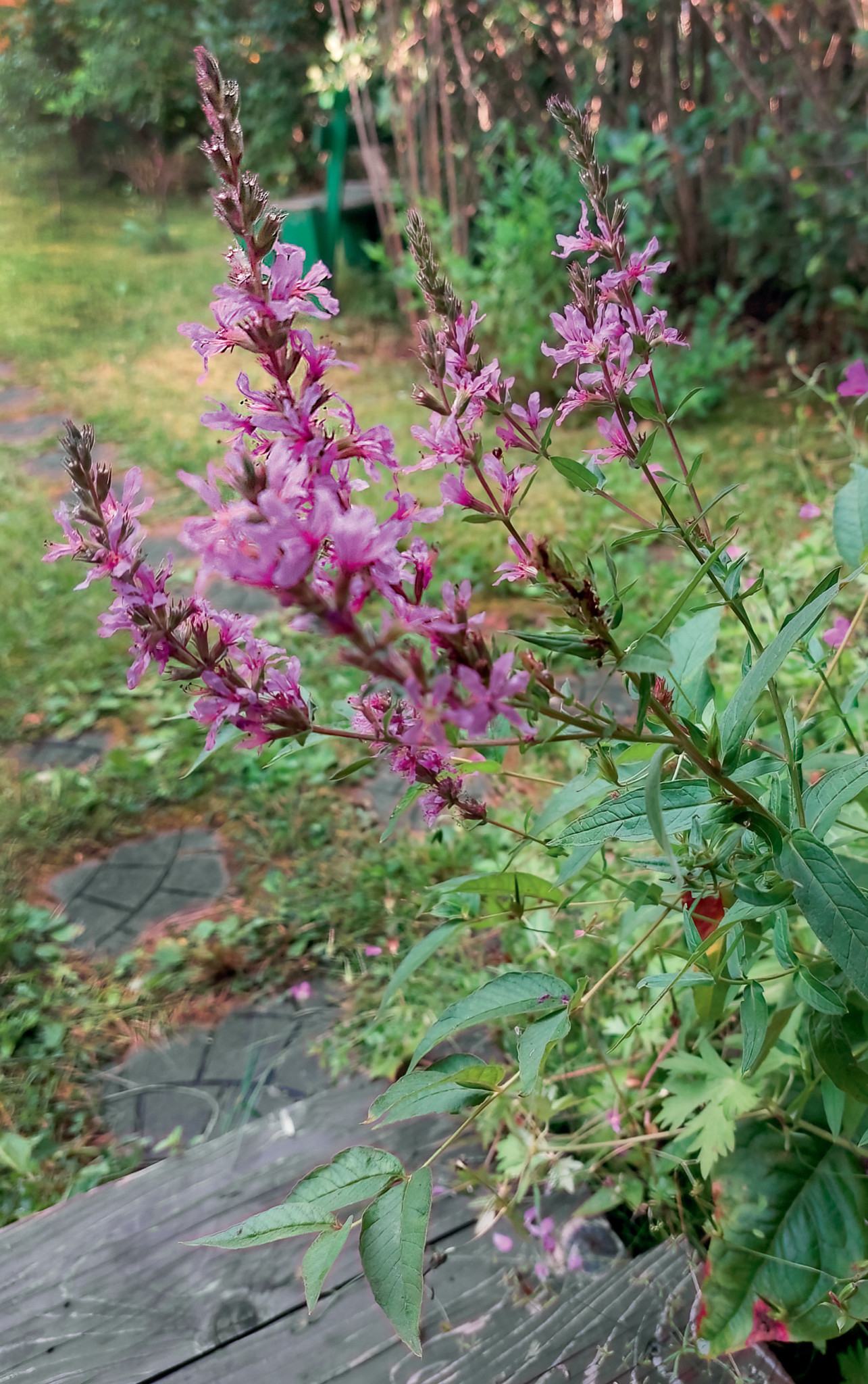 Заросшие берега рек и озёр выглядят живописно, но порой довольно однообразно в цветовом отношении: нагромождение осок и камыша сменяются плотной стеной вечно шелестящего тростника или ажурными кустами ив. И всюду преобладает зелёный цвет, оконтуривая водную гладь. Шагаешь вдоль такого берега, смотришь, приглядываешься — вроде много всего интересного, а взгляду зацепиться не за что. И вдруг посреди сплетения листьев и стеблей вспыхивает пурпурное «пламя», как яркий акцент пейзажа, как вызов цветовому постоянству — это зацвёл дербенник!