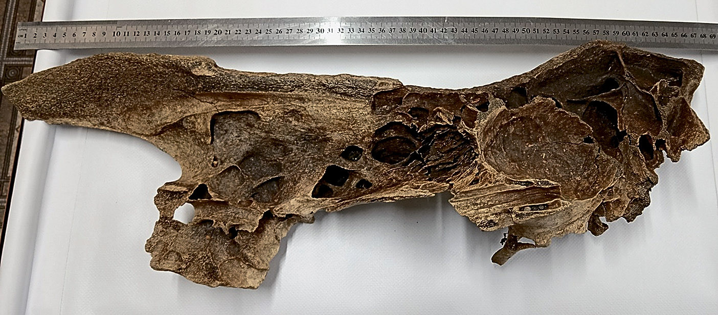 Патрулируя заповедные территории, сотрудники заповедников порой делают находки, не имеющие отношения к охране живой природы, однако важные для других научных областей. Так, в Тунгусском заповеднике обнаружили кусок черепа шерстистого носорога. Череп когда-то раскололся вдоль, правая часть попала в руки исследователям. Находка сильно повреждена, тем не менее по размерам куска черепа и по некоторым особенностям можно сделать вывод, что это было взрослое животное.