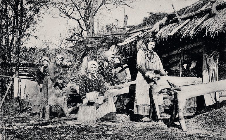 Вятские крестьянки у курной избы. Открытка начала ХХ века.
