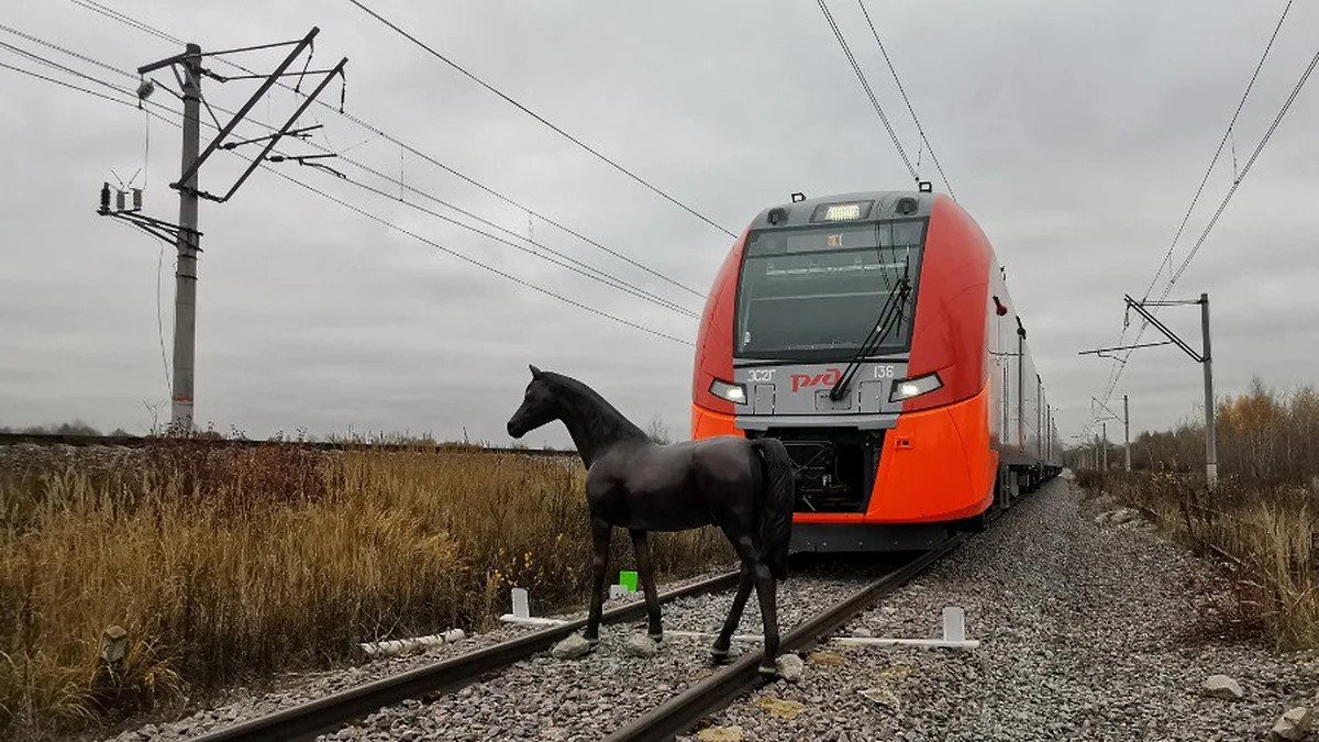 Скоростной поезд «Ласточка» мчится по рельсам, сбрасывает скорость, останавливается в сотне метров от стоящей на путях лошади. Машиниста в кабине нет, поезд управляется автоматически с помощью комплекса технического зрения, разрабатываемого инженерами из АО НИИАС (ОАО РЖД).