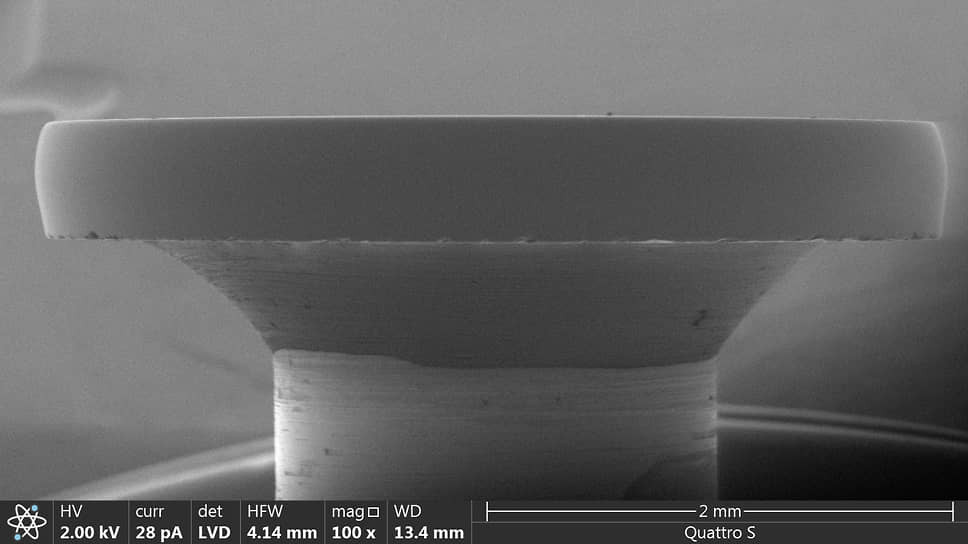 Кристаллический резонатор. Фото сделано в электронном микроскопе при 100-кратном увеличении