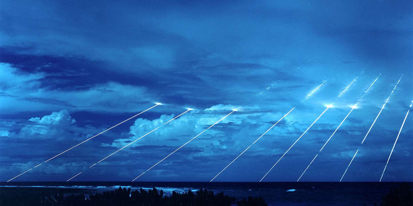 Финальный участок полета боеголовок LGM-118A «Peacekeeper», атолл Кваджалейн (это фото есть в Википедии)