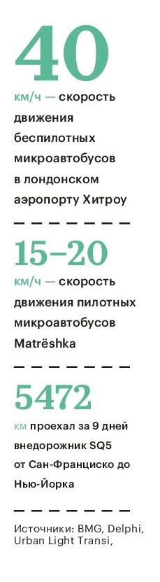 За год существования проекта выпущено три «Матрешки», к концу 2016 года их будет пять, обещает Бакулин. Все пока работают в тестовом режиме на полигоне в «Сколково». По его словам, сейчас даже трудно сказать, какой компанией должна быть BMG — автомобильной или информационно-технологической.