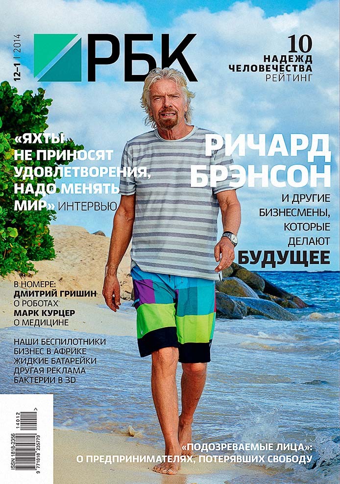 Выпуская номер журнала со списком «Бизнесменов, которые делают будущее» — в их числе пул экспертов назвал Илона Маска, Джеффа Безоса, Билла Гейтса и других фигур того же калибра — мы решили забыть о компромиссах. Один из этих людей должен быть на обложке, решили мы, и без обмана, с интервью с ним внутри. Так началась славная охота, в ходе которой нам удалось достать Ричарда Брэнсона. Основатель Virgin поговорил с нами по скайпу прямо с карибского острова Некер, его сотрудники сделали несколько снимков с ним прямо на берегу и отдали нам, не взяв денег. Словом, Брэнсон и так был нашим героем, но в очередной раз утвердился в этом статусе.