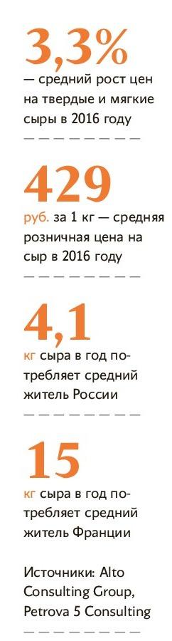 Еще более ободряющие цифры приводит Юрий Власенко, директор по маркетингу ОАО «ПиР Продукт», одного из крупнейших в России дистрибьюторов молочной продукции: «По итогам 2015 года натуральный объем рынка сыра и сырных продуктов, включая плавленые сыры, составил 790 тыс. т. При средней цене килограмма 500 руб. в денежном выражении это около 400 млрд руб.». То есть в последние годы перед отечественными производителями открылась свободная ниша размером более 150 млрд руб.