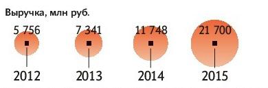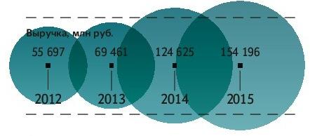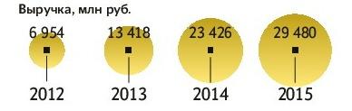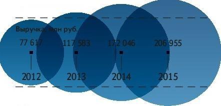 1. Совокупная выручка участников рейтинга по итогам 2015 года достигла почти 1,5 трлн руб. Это почти на 44% меньше совокупного дохода прошлогоднего топ-50: тогда выручка лидеров роста составляла около 2,6 трлн руб. (за 2014 год). Более того, 1,5 трлн руб. от 50 компаний почти сопоставимы с выручкой одной корпорации РЖД (1,9 трлн руб. за 2015 год) и составляют лишь четверть выручки самой крупной компании России «Газпром».