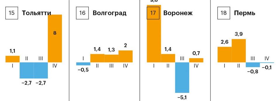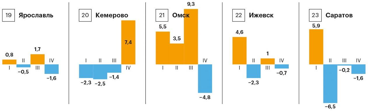 Самыми «ровными» городами в 2017-м стали Ярославль, Волгоград и Челябинск, сильнее всего индекс скакал в Краснодаре, Воронеже и Омске.