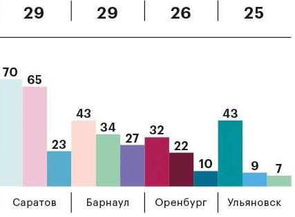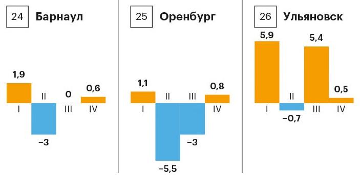 Два самых дешевых для жизни крупных города остались внизу списка, хотя стоимость жизни в Оренбурге упала на 2 пункта, в Ульяновске — выросла на 5.