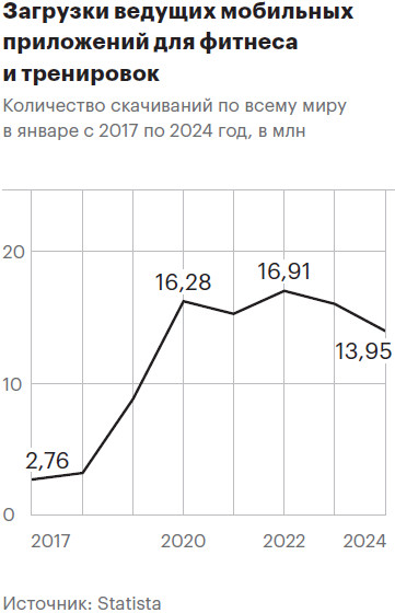 Мобильные приложения для тренировок показали взрывной рост в 2020 году на фоне пандемии. Всеобщая изоляция завершилась, но интерес к фитнес-приложениям продолжает расти с каждым годом. Ожидается, что к 2027 году объем мирового рынка фитнес-приложений достигнет $14,64 млрд, сообщает компания ZipDo. Согласно ее прогнозам, среднегодовой рост составит около 33,1%.