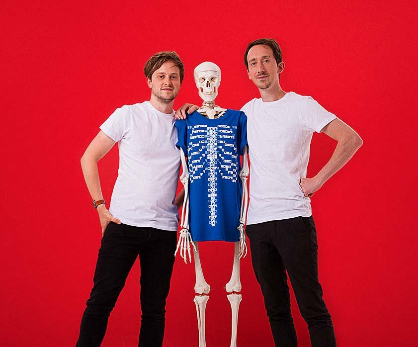 Голубые футболки с принтами-скелетами от британского стартапа Curiscope не костюм на Хеллоуин, а настоящий портал в мир дополненной реальности. Схематично изображенные на ткани кости, смахивающие на кроссворд, — это QR-код. Запустив на смартфоне бесплатное приложение, пользователь может заглянуть «внутрь» человеческого тела и изучить устройство грудной клетки или кишечника.