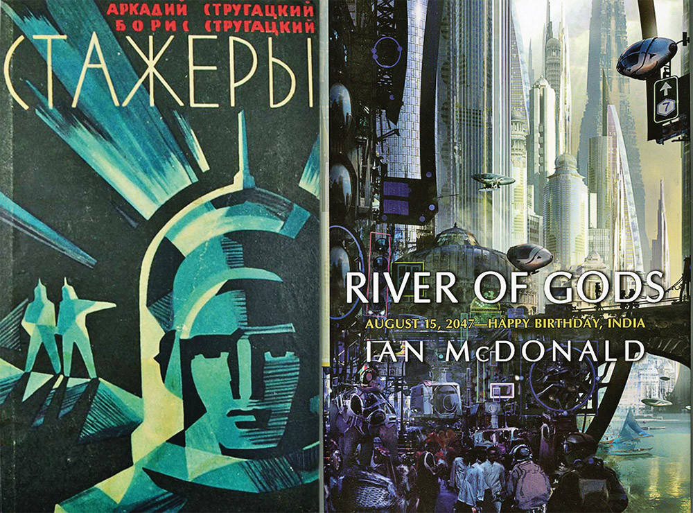 Во-первых, когда катастрофа уже стучится в двери и речь идет не об этике, а об элементарном выживании Homo sapiens. Как в романе Паоло Бачигалупи «Заводная» (The Windup Girl, 2009), где не осталось ископаемого топлива, а энергия добывается благодаря сверхэкономным пружинам и мышечным усилиям генетически трансформированных животных, или в «Реке богов» (River of Gods, 2004) Йена Макдональда, где экономика и политика строятся вокруг запасов пресной воды.