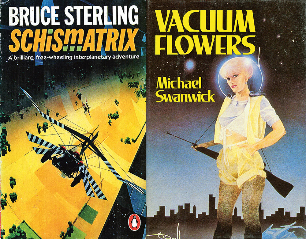 Брюс Стерлинг в романе «Схизматрица» (Schismatrix, 1985) еще проводит черту между шейперами, сделавшими ставку на биотехнологии, и механистами, предпочитающими механические импланты. Но эта граница быстро стирается. Уже в романе «Вакуумные цветы» (Vacuum Flowers, 1987) Майкла Суэнвика и цикле о Мариде Одране (Marîd Audran, 1987–2003) Джорджа Алека Эффинджера генетически усовершенствованные герои используют чипы, позволяющие напрямую передать опыт, мгновенно овладеть любой профессией, любыми навыками, трансформировать личность — а потом безболезненно сменить набор инструментов.