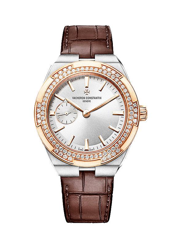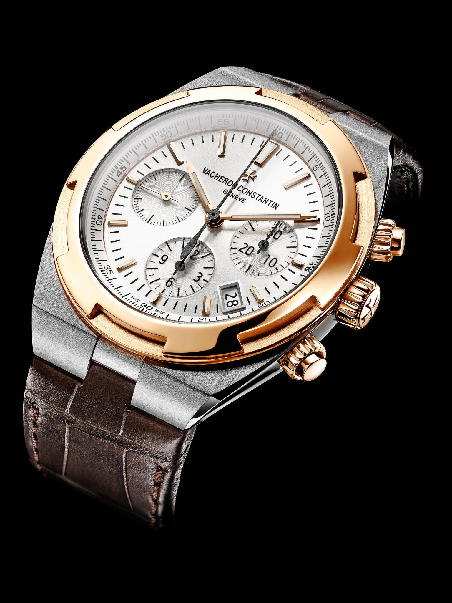 Активно обновлять линейку Overseas компания Vacheron Constantin начала в прошлом году. На женевском часовом салоне SIHH были представлены сразу пять новых мужских и женских моделей с мануфактурными механизмами, отмеченными Женевским клеймом. В линию из 12 референсов вошли часы из стали и золота с простой индикацией времени, хронограф, модель с бриллиантами, ультратонкие часы с вечным календарем. Главным вдохновением для коллекции стала роза ветров: символ путешествий украшал ротор подзавода. Новые Overseas получились еще более актуальными, динамичными и практичными часами на каждый день: кроме стального браслета клиентам впервые были предложены дополнительные ремешки из каучука и кожи аллигатора, которые можно менять самостоятельно. Эта опция сохранилась в следующем обновлении коллекции Overseas Worldtime и последних новинках, сочетающих корпус из холодной стали и ободок с характерными шестью выступами из розового золота. В биколорной серии выпущены мужской хронограф (диаметр 42,5 мм) и трехстрелочник с индикатором даты (диаметр 41 мм), а также изящные женские модели (диаметр 37 мм) с часовой и минутной стрелками и малой секундной, их золотой ободок до блеска отполирован или усыпан 84 бриллиантами круглой огранки. Сменные ремешки прилагаются.