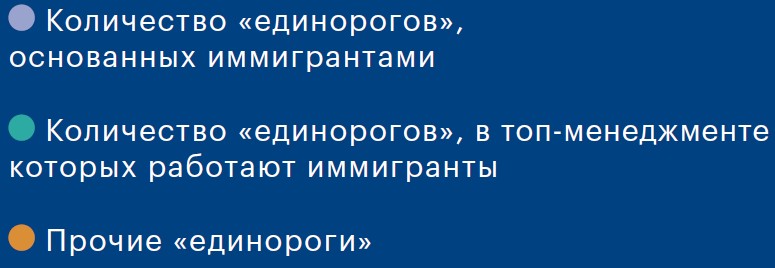 Еще одна показательная статистика — доля американских «единорогов», непубличных компаний с оценкой от $1 млрд, основанных иммигрантами. Подробное исследование происхождения предпринимателей «на миллиард» в 2016 году предприняла независимая исследовательская компания National Foundation for American Policy. И хотя число «единорогов» с тех пор кратно увеличилось, пропорции, подтверждающие важность бизнес-иммиграции для национальной экономики, сохраняются.