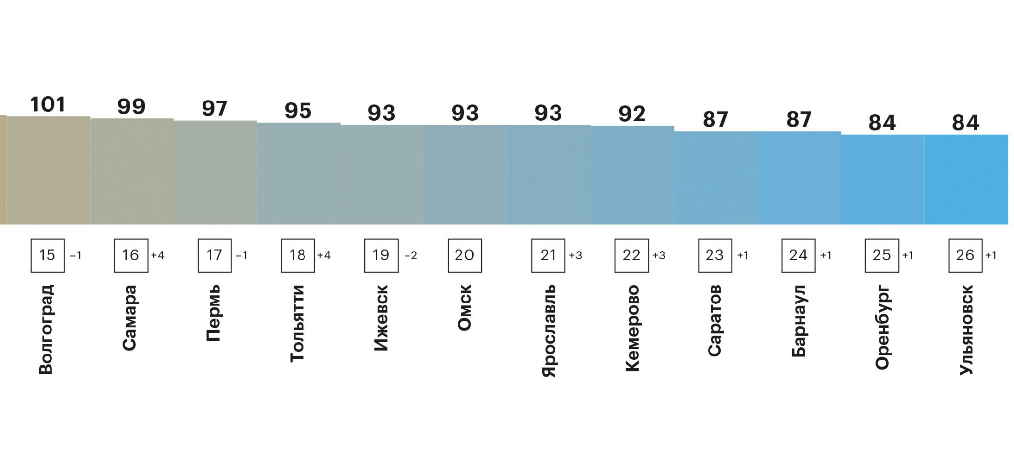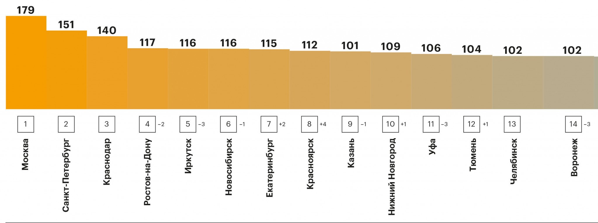 В этот раз мы проанализировали, как поменялась стоимость собранной нами потребительской корзины, состоящей более чем из 30 категорий товаров и услуг, в первом квартале 2018 года: что в обозначенном периоде подорожало, что подешевело и каков средний показатель инфляции по всем городам, попавшим в финальную выборку исследования. Тройка самых дорогих городов в первом квартале осталась неизменной — Москва, Санкт-Петербург, Краснодар, сильнее всего жизнь подорожала в Красноярске и Тольятти, которые поднялись в индексе сразу на четыре позиции. Чемпионом по снижению стоимости жизни стал Воронеж, опустившийся на три позиции.