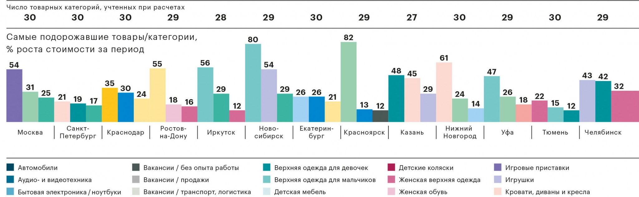 Журнал РБК продолжает мониторить уровень цен и динамику их изменений в 26 крупнейших городах России на основании данных сервиса Avito — результаты этого мониторинга мы публикуем ежеквартально.