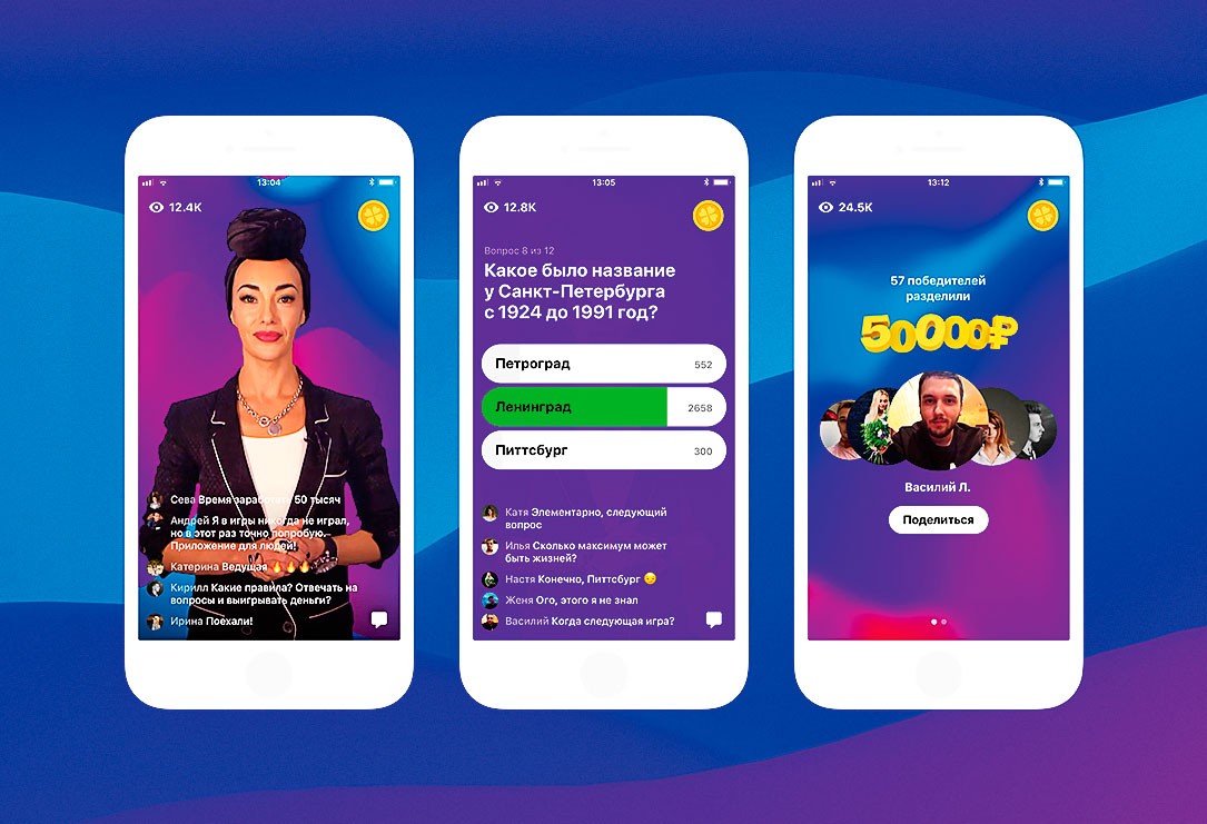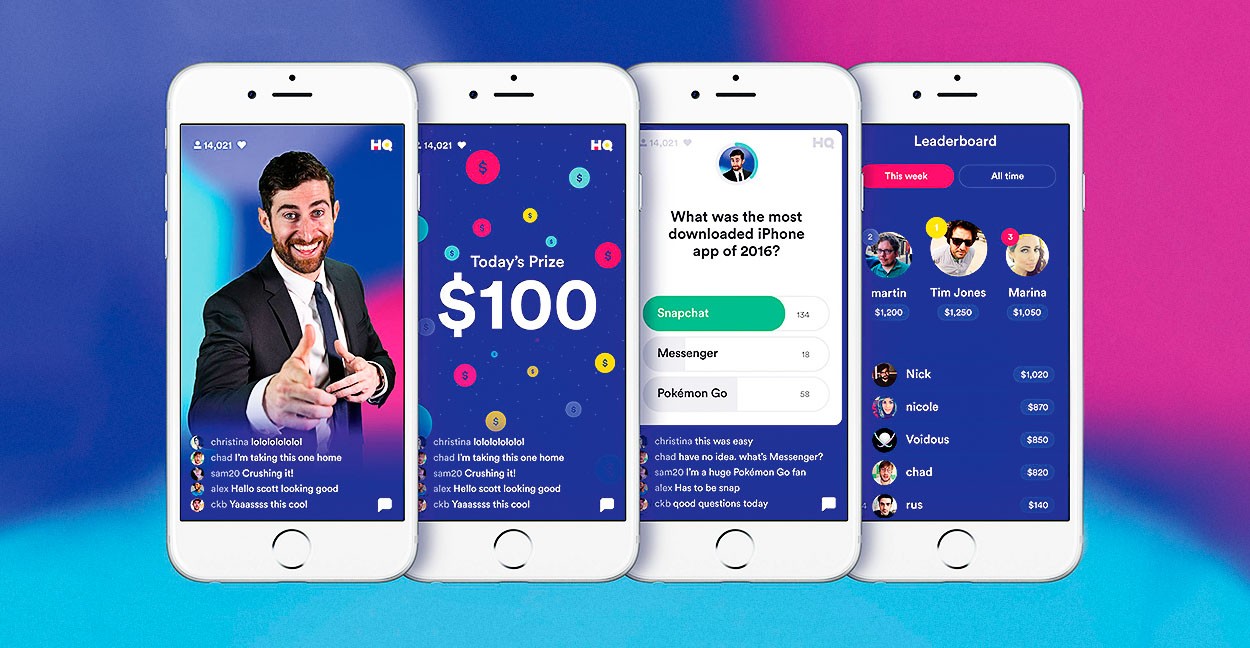 HQ Trivia в августе 2017 года запустили сооснователи приложения Vine Руслан (Рус) Юсупов и Колин Кролл. Им пришла в голову идея скрестить в одном сервисе два «горячих» тренда — прямые трансляции, раскрученные Periscope и его аналогами, и онлайн-викторины по классической модели «Кто хочет стать миллионером?» и других телешоу. Игра в приложении запускается дважды в день и длится 15–20 минут. За это время пользователи должны ответить на 12 вопросов ведущего, лимит — десять секунд. Победители, прошедшие все раунды, делят призовой фонд — в США он доходит до сотен тысяч долларов за игру. Американская викторина быстро стала мобильным хитом — набрала более 5 млн скачиваний, привлекла $15 млн инвестиций от пула во главе с Founders Fund при оценке выше $100 млн и породила множество локальных копий: в Китае запустилась Millions Winner, в Индии — Loco, во Франции — Bethewone. В России всех опередила «ВКонтакте»: с инициативой создать местную HQ Trivia выступила маленькая команда разработчиков во главе с 16-летним Севой Жидковым, самым юным программистом соцсети, который устроился на работу после 9-го класса школы и специализировался в сфере машинного обучения.