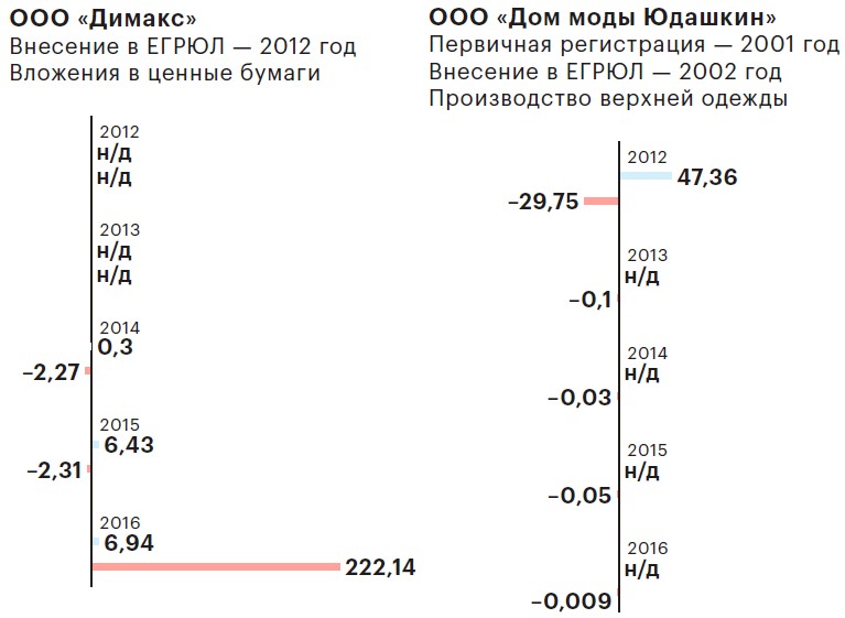 Модный дом Юдашкина никогда не публиковал данные о продажах, а отчетность компаний кутюрье в СПАРК выглядит странно. В 2016 году совокупная выручка компаний «Шанти» и «Димакс», через которые идут продажи модной одежды и аксессуаров Valentin Yudashkin в России, составила 84,9 млн руб., а их совокупная чистая прибыль была в восемь раз больше — 682 млн руб. Более свежих данных нет, и это самые высокие показатели за все время. Но это далеко не весь бизнес, в котором участвует Юдашкин или хотя бы его имя.