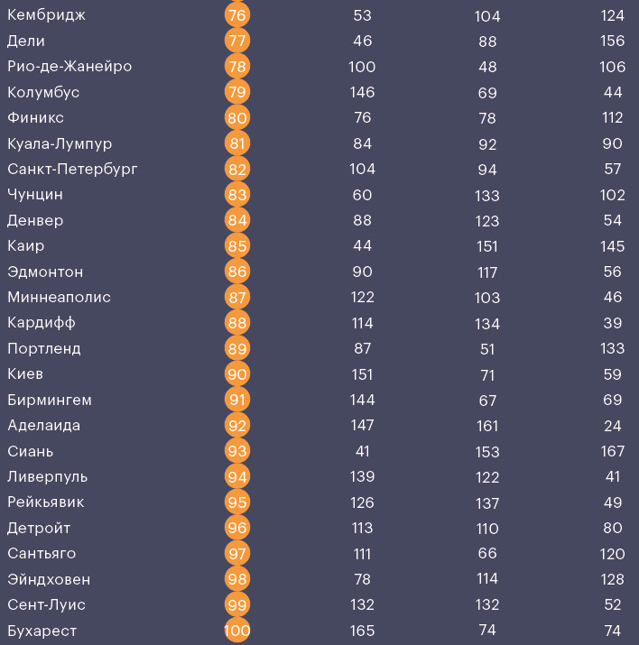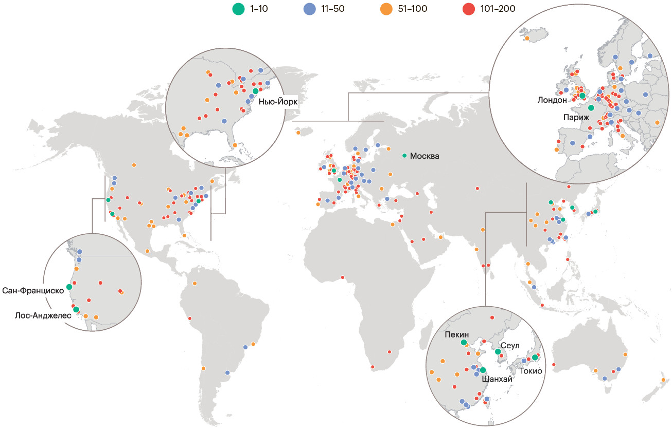 Из 200 самых привлекательных для инноваторов городов мира на топ-10 пришлось: