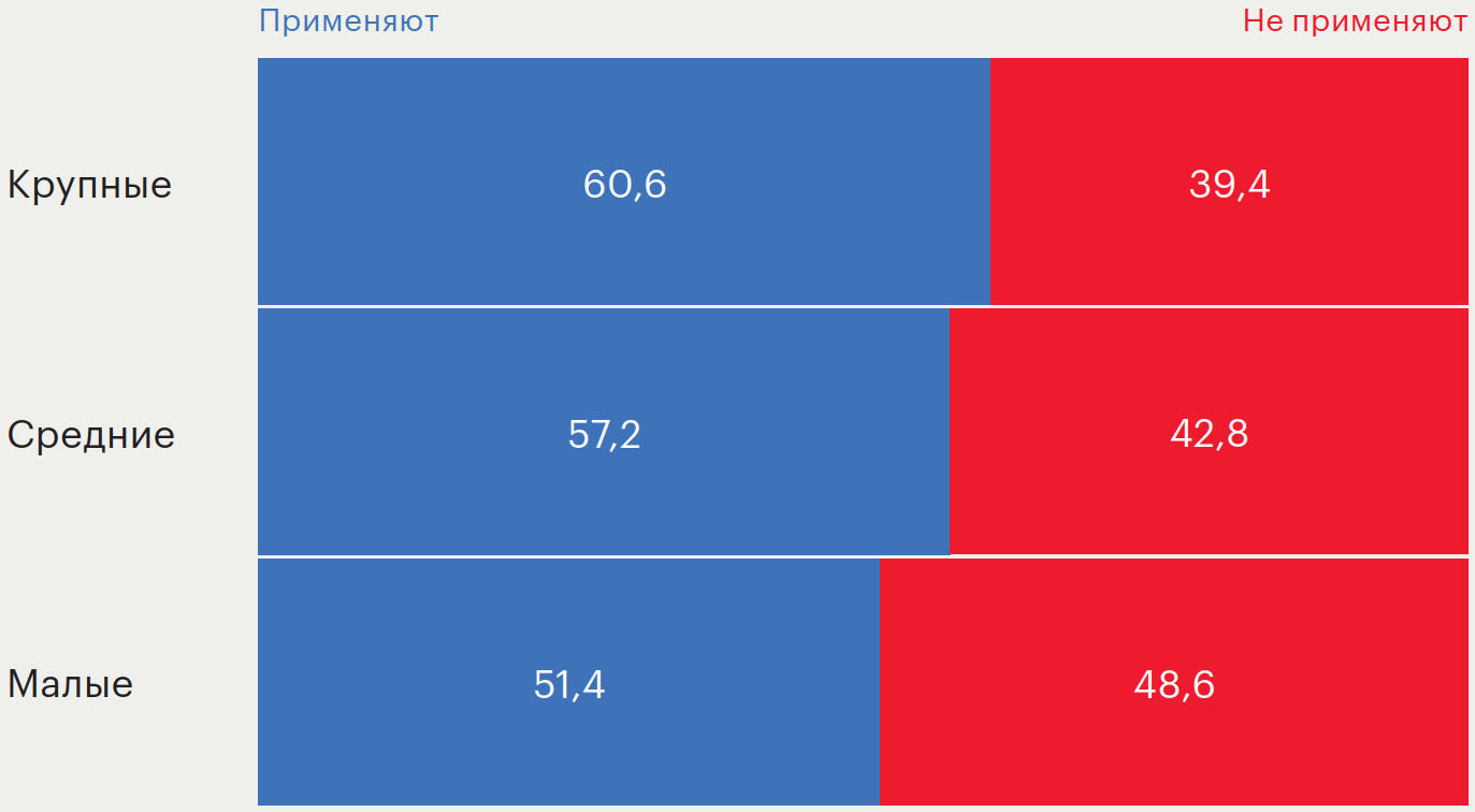 * От числа организаций, внедряющих или планирующих внедрять цифровые технологии.