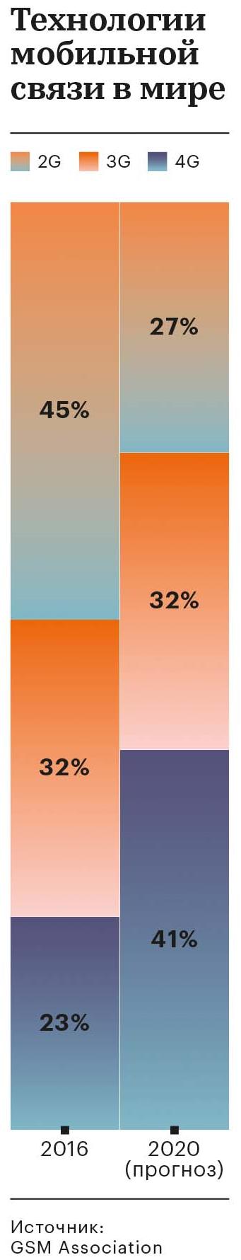 К 2020 году стандарт GSM будет все еще наиболее распространен в странах Африки южнее Сахары: на него придется 41% рынка (в Европе — 14%), по прогнозу GSMA Intelligence. При этом до 2019 года Африка будет регионом с самым быстрым ростом мобильных подключений — в среднем на 7,4% в год; Центральная и Южная Азия — на втором месте с 5,1%, подсчитала аналитическая компания Ovum.