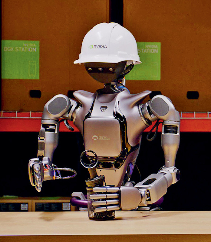 Nvidia ведет разработки в области применения ИИ для управления роботами. Передовая ИИ-модель GR00T N1 для гуманоидной робототехники работает в двух режимах, дублирующих принципы человеческого мышления: «медленное мышление» для восприятия окружающей среды и рассуждения и «быстрое мышление» для автоматических действий.