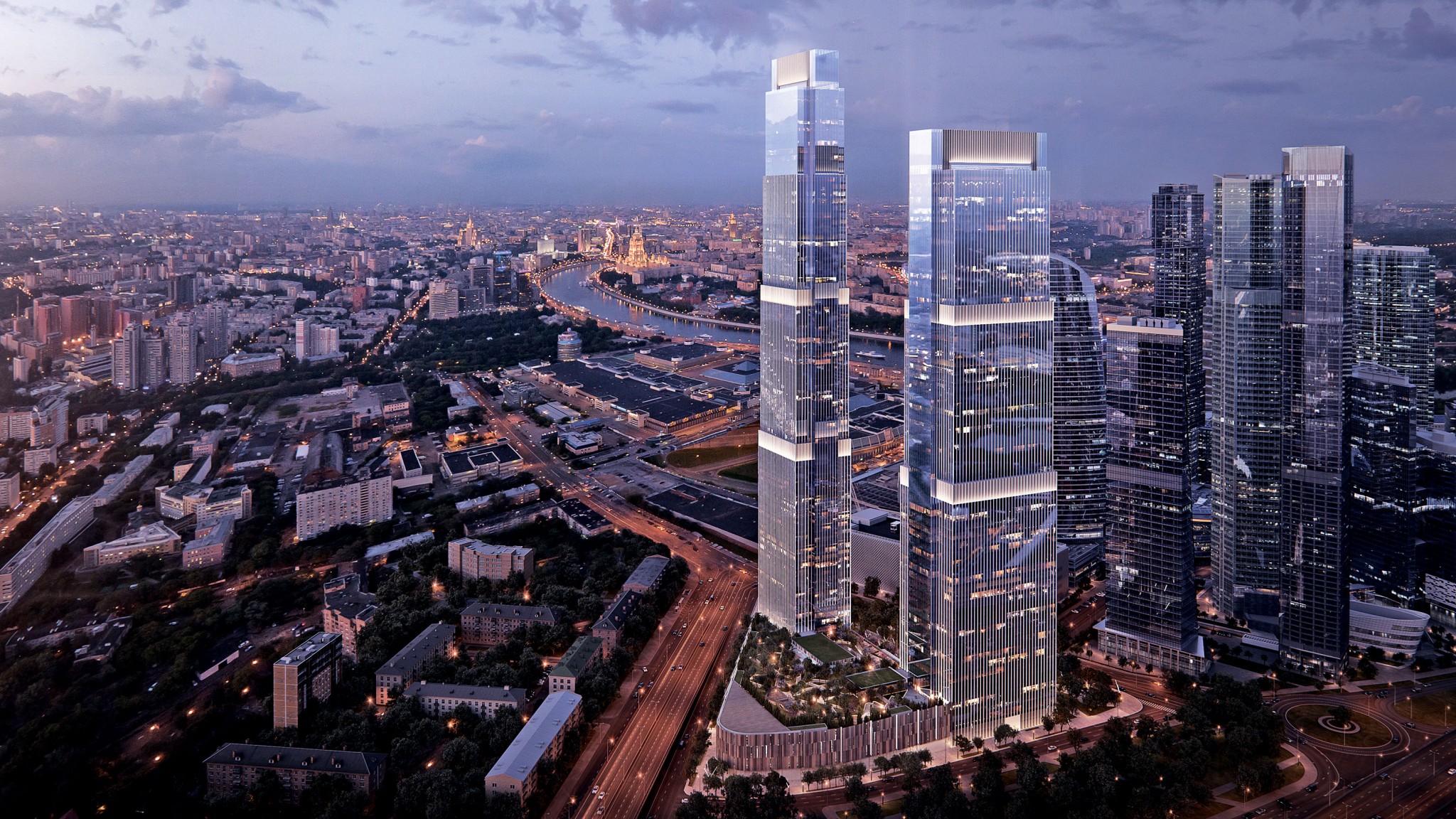 «Башни спроектированы в традициях исторических небоскребов начала ХХ века, легкость стекла и массивность натурального камня дополняют друг друга. Такой образ не подвержен сиюминутной моде, это классика жанра. В «Москва-Сити» было много высотных доминант с экстравагантными формами, но не хватало классических силуэтов», — описывает проект один из его авторов Сергей Чобан, руководитель бюро SPEECH.