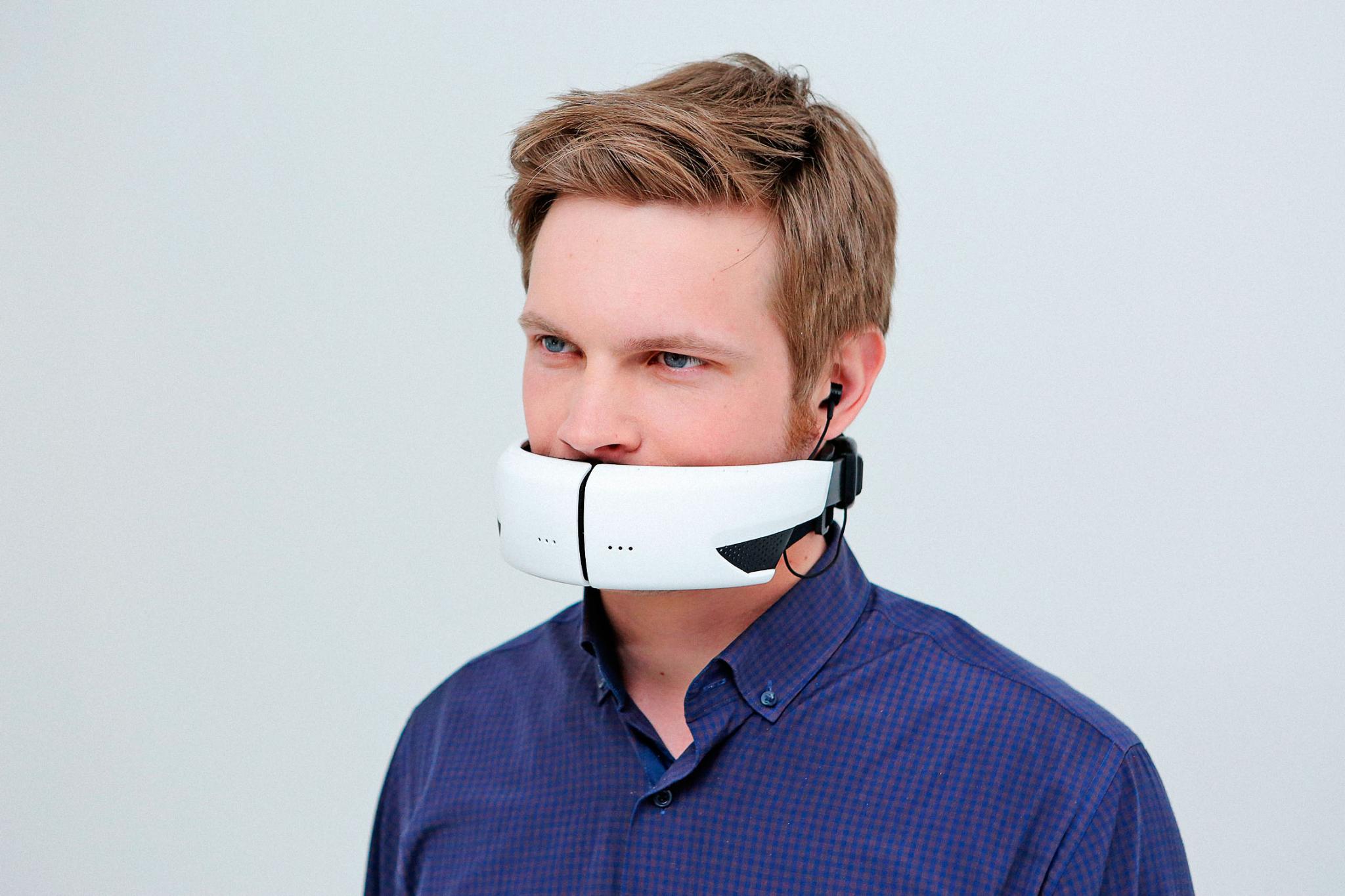На выходе получился громоздкий, но эффективный гаджет. Пластиковая гарнитура крепится на уровне рта при помощи магнитных застежек спереди и эластичной лямки сзади. За передачу звука отвечает встроенный микрофон, за воспроизведение — проводные наушники. Сменные мягкие тканевые вкладыши и шумоизоляционное покрытие с внутренней поверхности устройства снижают уровень громкости речи пользователя и превращают ее для окружающих в набор неразборчивых звуков. Hushme можно использовать и как обычный hands free микрофон и «по прямому назначению», говорит Сакун.