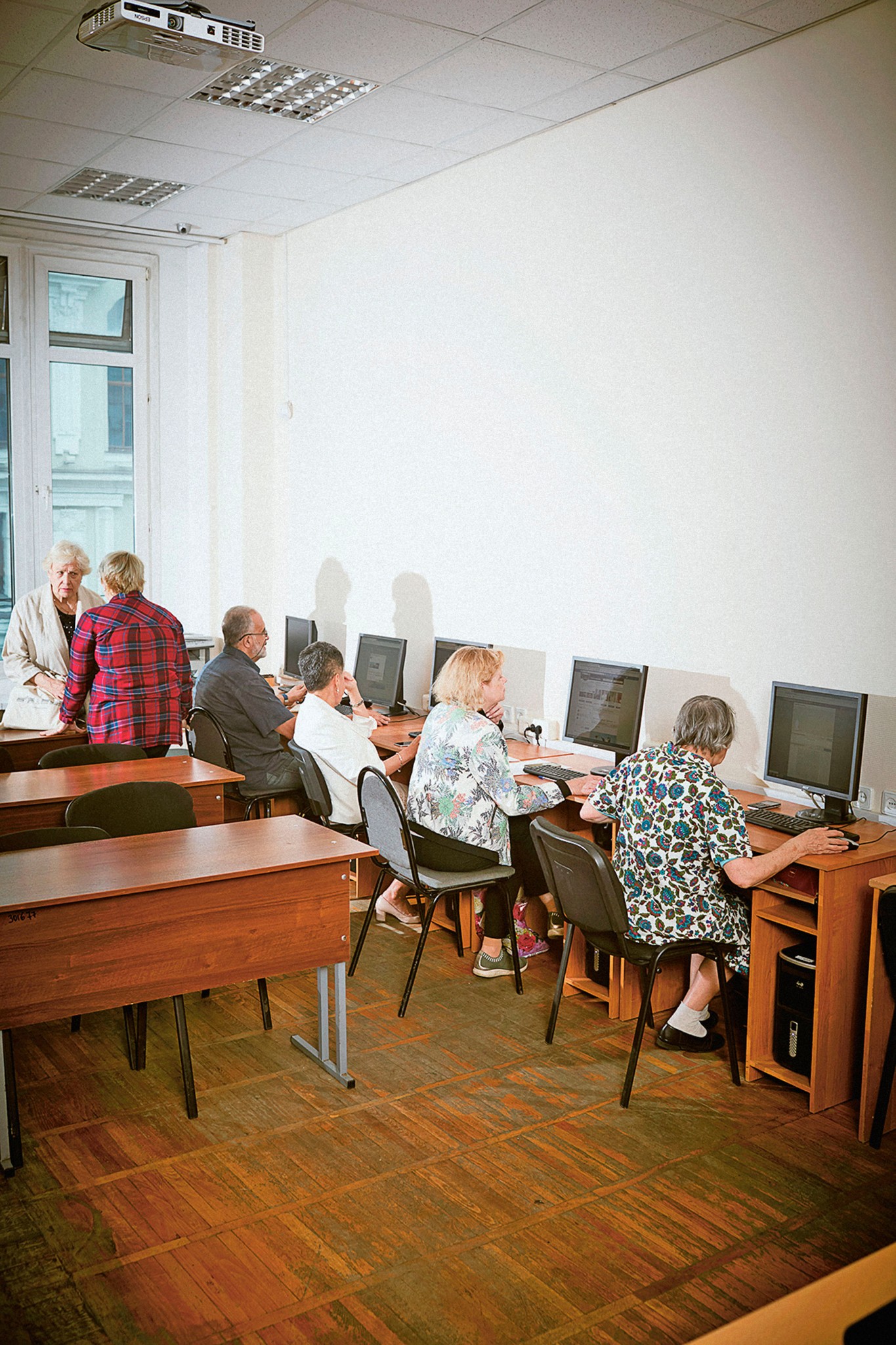 Более 30 пожилых людей проходят обучение в Высшей школе экономики в рамках проекта «Информационная грамотность». Все они пытаются решить проблему, которую руководство ВШЭ называет «неумением использовать новейшие технологии». Ученики говорят, что сейчас у них самый подходящий момент для развития — «другого времени у нас особо и не было» — и жалуются на слишком простую программу.