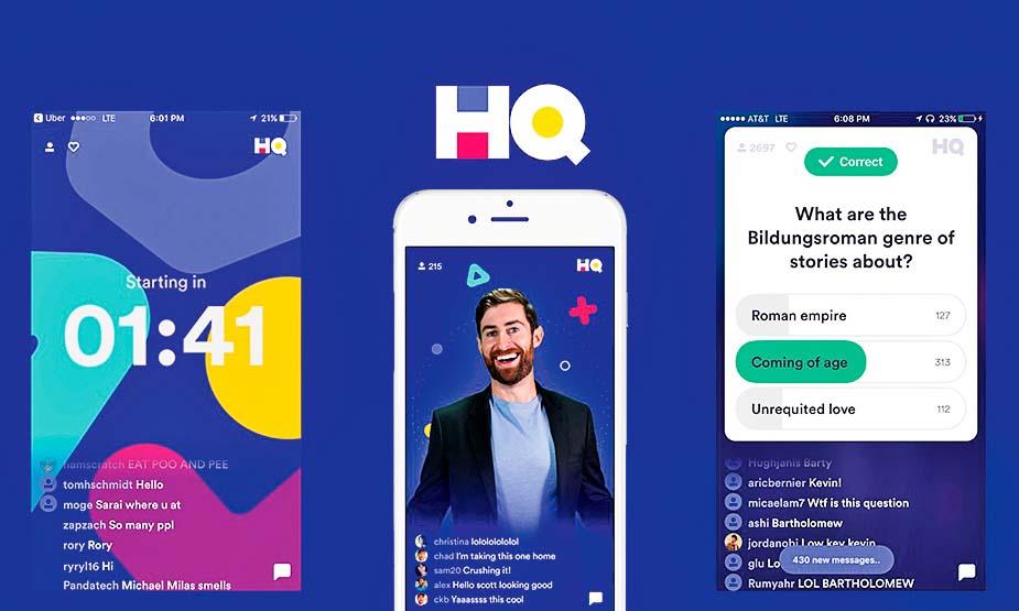 HQ — бесплатная интерактивная викторина в прямом эфире, устроенная по типу шоу «Кто хочет стать миллионером?». Ее участником может стать каждый скачавший приложение в App Store (Android-версия только готовится к запуску). Розыгрыши запускаются так же, как трансляции в Facebook (соцсеть признана в РФ экстремистской и запрещена) Live или Periscope, но не в любой момент, а в строго определенные часы — в 21:00 по будням и в 15:00 по выходным. Игра длится 15 минут, за это время участники должны ответить на вопросы ведущих Скотта Роговски и Шэрон Карпентер. Всего вопросов 12, у каждого по три варианта ответа, сложность растет по мере прохождения раундов. Игроки должны быть старше 17 лет.