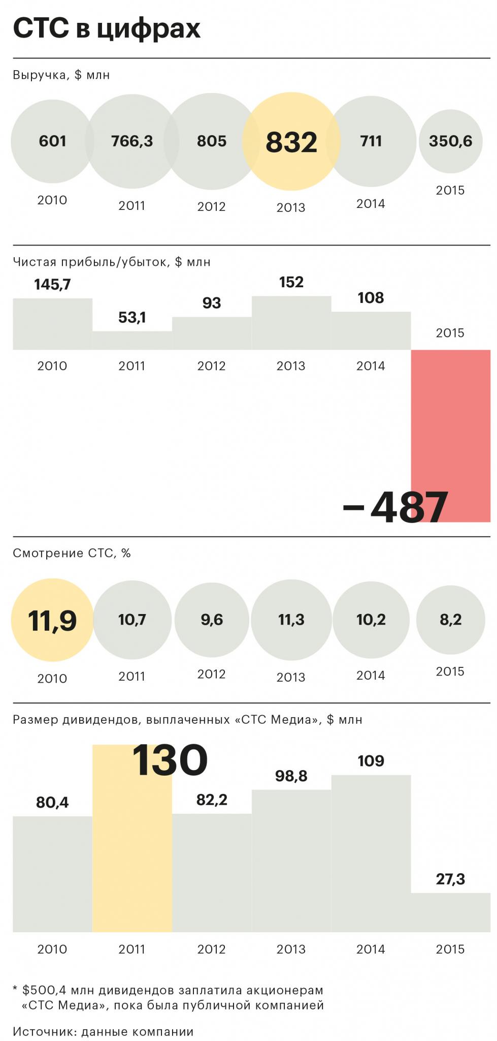 С финансовой точки зрения «СТС Медиа» чувствовал себя хорошо: относительно неудачным стал только 2009 год — выручка упала до $506 млн с $640 млн в 2008 году, компания объяснила это сокращением рекламного рынка в кризис и ослаблением курса рубля (чистая прибыль при этом выросла до $100 млн с $22,5 млн в 2008-м). В 2010 году холдинг увеличил выручку до $601,3 млн, чистую прибыль — до $145,7 млн.