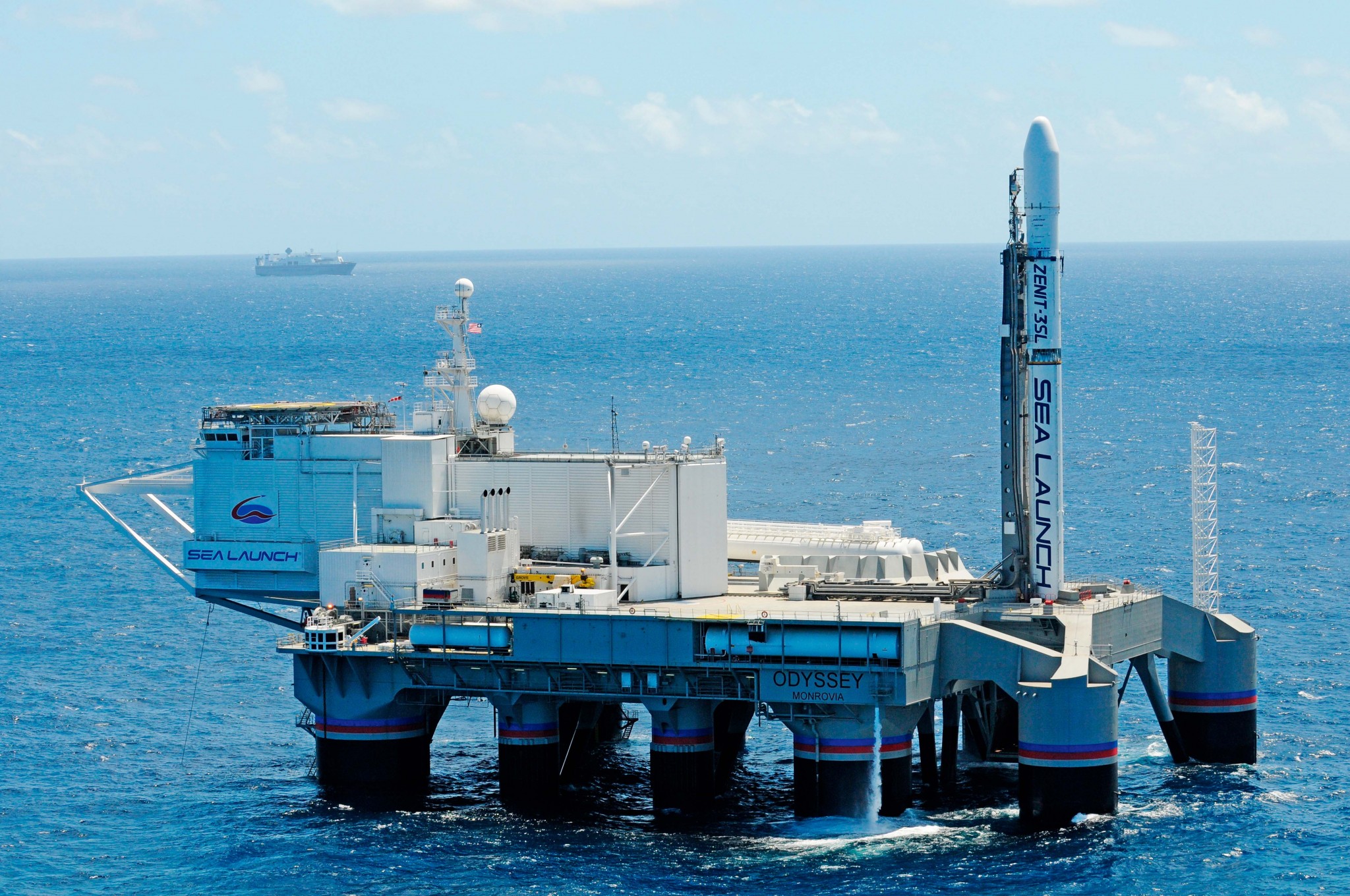 Воплотить проект в жизнь было очень непросто. Прежде всего, нужно было создать стартовый комплекс из двух кораблей: сборочно-командного судна Sea Launch Commander и пусковой платформы Odyssey. Платформа — это самоходный катамаран длиной более чем 130 м, шириной и высотой 60 м, который переделан из сгоревшей в 1998-м нефтедобывающей платформы. Перед стартом Odyssey набирает воду и погружается на 20 м ниже обычного положения, что делает его более устойчивым для запуска. Перед запуском команда Odyssey перебирается по временному мосту на Commander, который отходит на расстояние не менее 3–5 км. В самой платформе сделаны отверстия, отводящие большую часть тепла и пламени в воду.