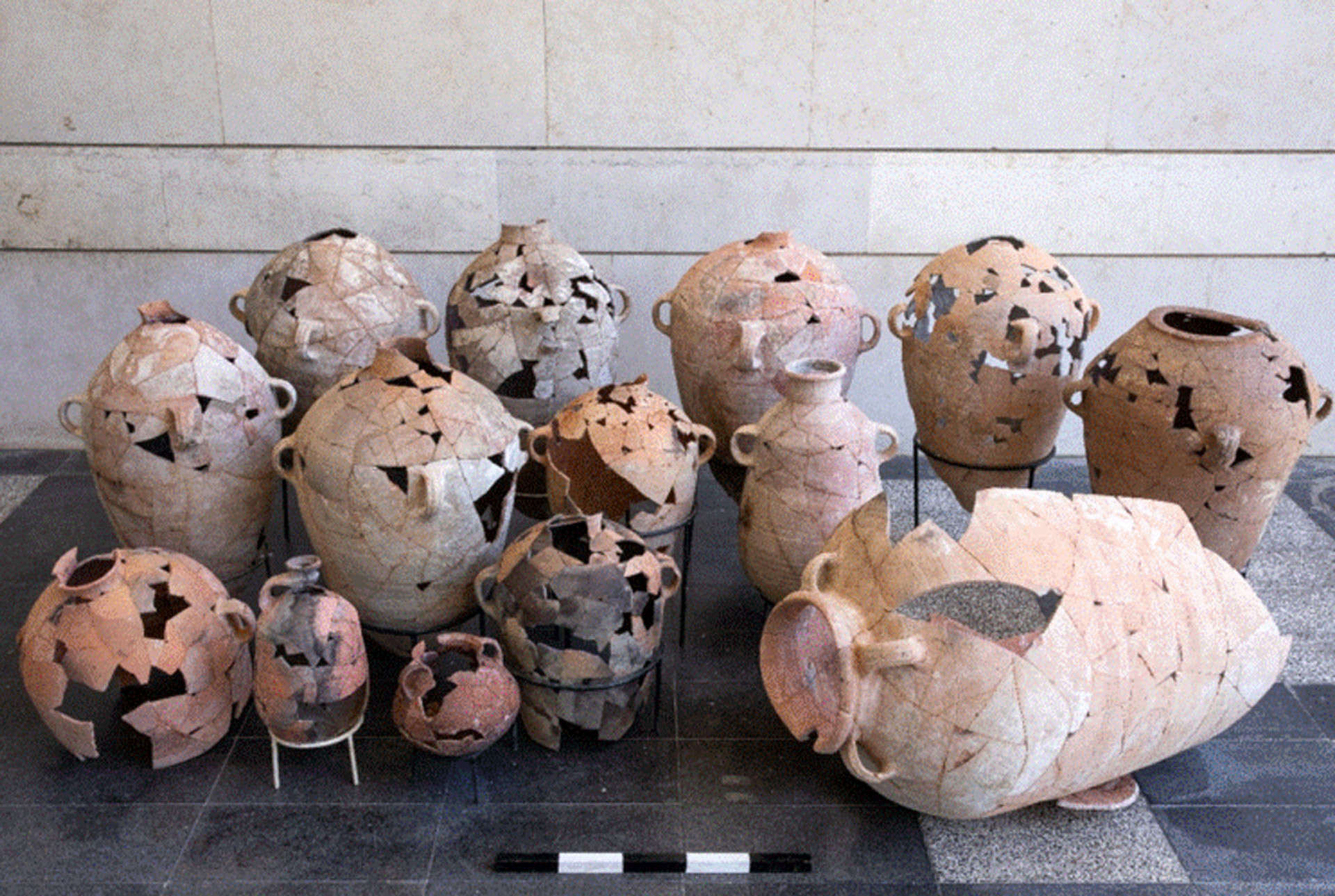 На сосуды на первом этаже не воздействовали огонь и высокие температуры, но сверху их засыпало обгоревшими балками, массивом пепла, обломками камней и штукатурки, которые подвергались температурам до 600 градусов. Вторую группу кувшинов обнаружили южнее Храмовой горы, в подобном помещении VII века до нашей эры.