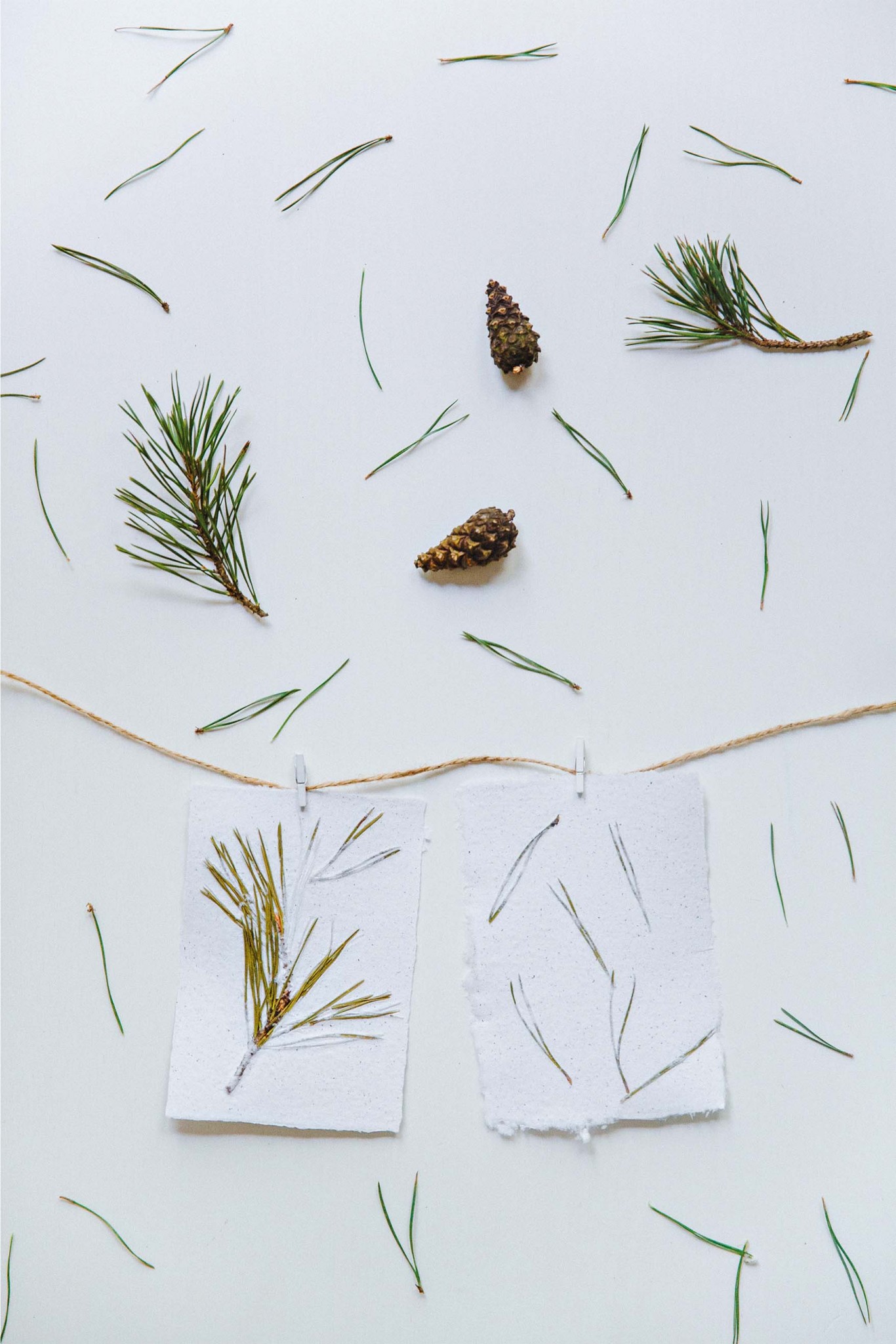На бумаге, которую сделали вручную, можно уже ничего не писать — она сама по себе послание: про зиму, хвойные иголки, хруст снега, тишину белого цвета