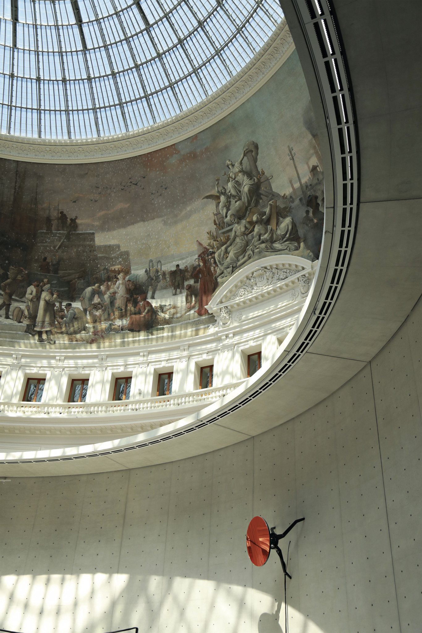 Сюда нужно обязательно идти не только для того, чтобы увидеть, услышать и физически прикоснуться к современным художественным процессам, но и чтобы оценить проект превращения памятника архитектуры прошлого в архитектуру настоящего и будущего, автор проекта — японец Тадао Андо. Стеклянный купол, восстановленные росписи XIX века, центральный зал в форме цилиндра, который обнимают две лестницы, похожие на молекулу ДНК, коридоры вокруг центральной ротонды на всех трех уровнях и галереи, в которые можно попасть из коридоров, — внешнее кольцо здания.