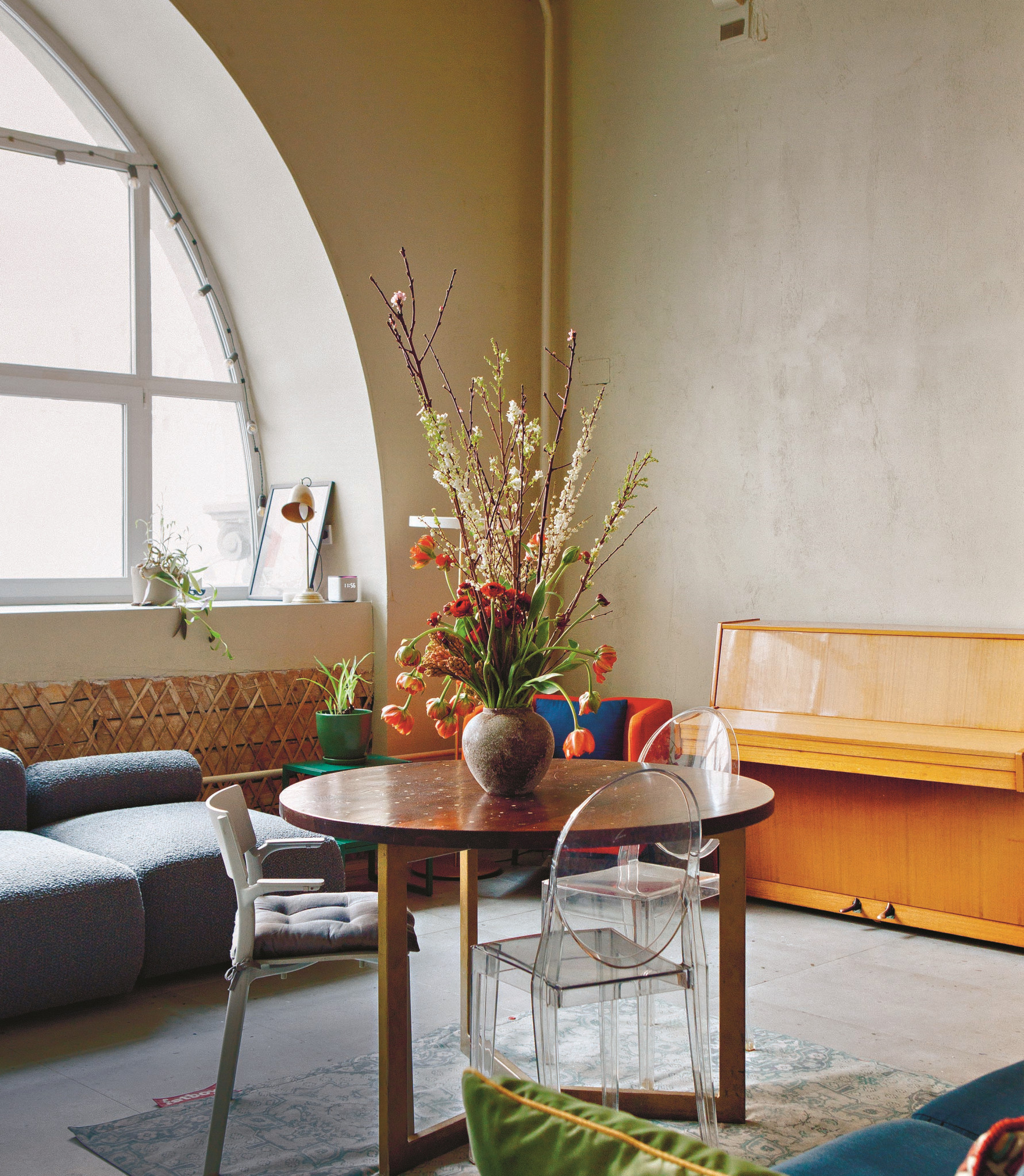 Чуть больше года назад мы шли с нашим ассистентом Наташей по Каретным переулкам смотреть очередное пространство для студии Seasons (к тому моменту наша команда уже полгода работала дистанционно, встречаясь раз в неделю на летучках в разных дружественных местах). Мы подошли к серому дореволюционному зданию не с парадной стороны, быстро нырнули в узкую дверь — и попали в офисный ремонт: коридор, ламинат, подвесные потолки (куда без них?), дверь налево и арочный проход направо — тот самый стрельчатый потолок, мы углядели его на фотографии под описанием объекта недвижимости, который сдавался в аренду на одном из московских сайтов. Такое вот прозаическое начало у волшебной истории обретения нового дома.