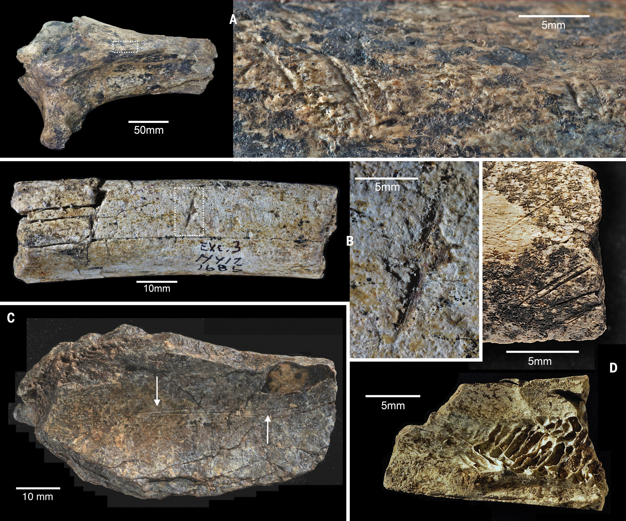 На костях этих животных имеются явные следы того, что мясо с них срезали с помощью каменных скребков, а костный мозг добывали, раздрабливая кости каменными топорами. Как отмечают исследователи, это самое раннее свидетельство того, что наши далекие предки, задолго до того, как начали использовать огонь, питались сырым мясом крупных животных.