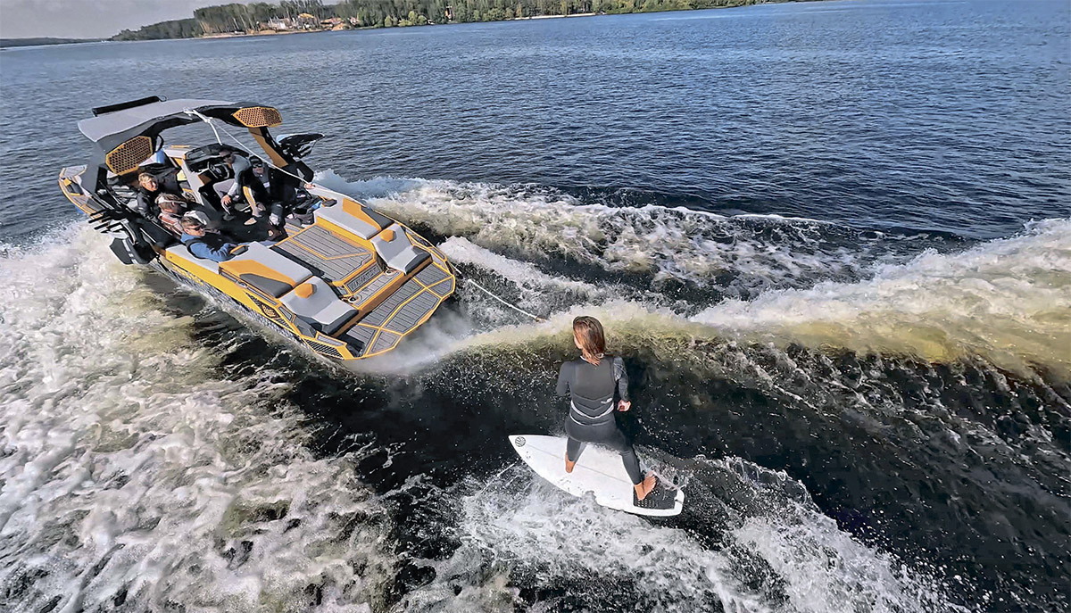 В России ничего подобного не найти – если, конечно, вы не живете недалеко от Халактырского пляжа на Камчатке. Но покататься на серфе можно и без океана. Для этого понадобится специальный катер для вейксерфинга, который оставляет за собой настоящую серфовую волну. Идея довольно старая: еще в 1950-х годах серферы катались на кильватерной струе за катерами. Потом появились вейкбордеры – бывшие скейтеры, которые решили объединить водные лыжи, серфинг и собственные трюки. Прыжки через кильватерную волну – отличительная особенность вейкбординга. В конце 1990-х этот спорт стал профессиональным, и возник спрос на катера, которые формировали идеальную волну.