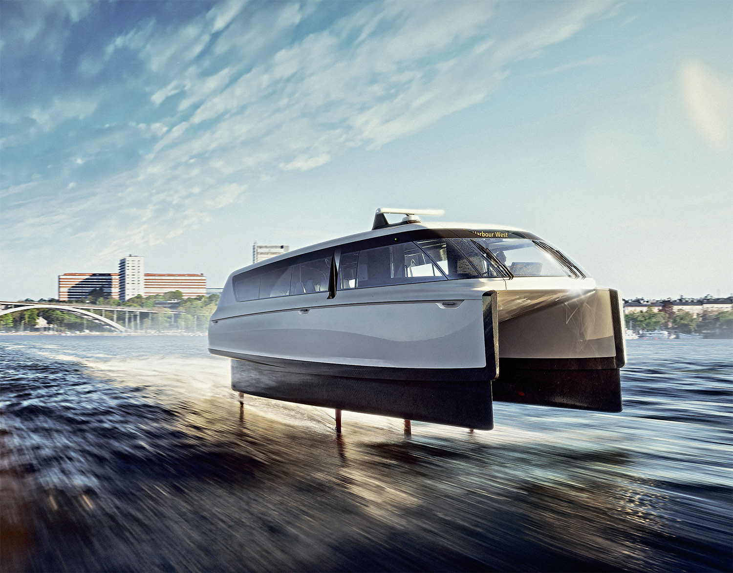 В Стокгольме широко используют водный общественный транспорт: здесь работают около 60 паромов с дизельными двигателями, которые перевозят 1,2 млн пассажиров в год. Чтобы снизить выбросы углекислого газа и уменьшить время поездки, шведский стартап Candela собирается сделать самый быстрый паром в мире. P-12 использует пару электродвигателей и, набрав скорость, поднимается на подводные крылья. Это позволяет развивать до 50 км/ч при 30 пассажирах на борту. Проблема в том, что движение по внутренним водным путям в столице Швеции ограничено семью узлами, а в окрестностях – двенадцатью (22 км/ч). А значит, прежде чем начать эксплуатацию таких судов, придется менять местное законодательство.