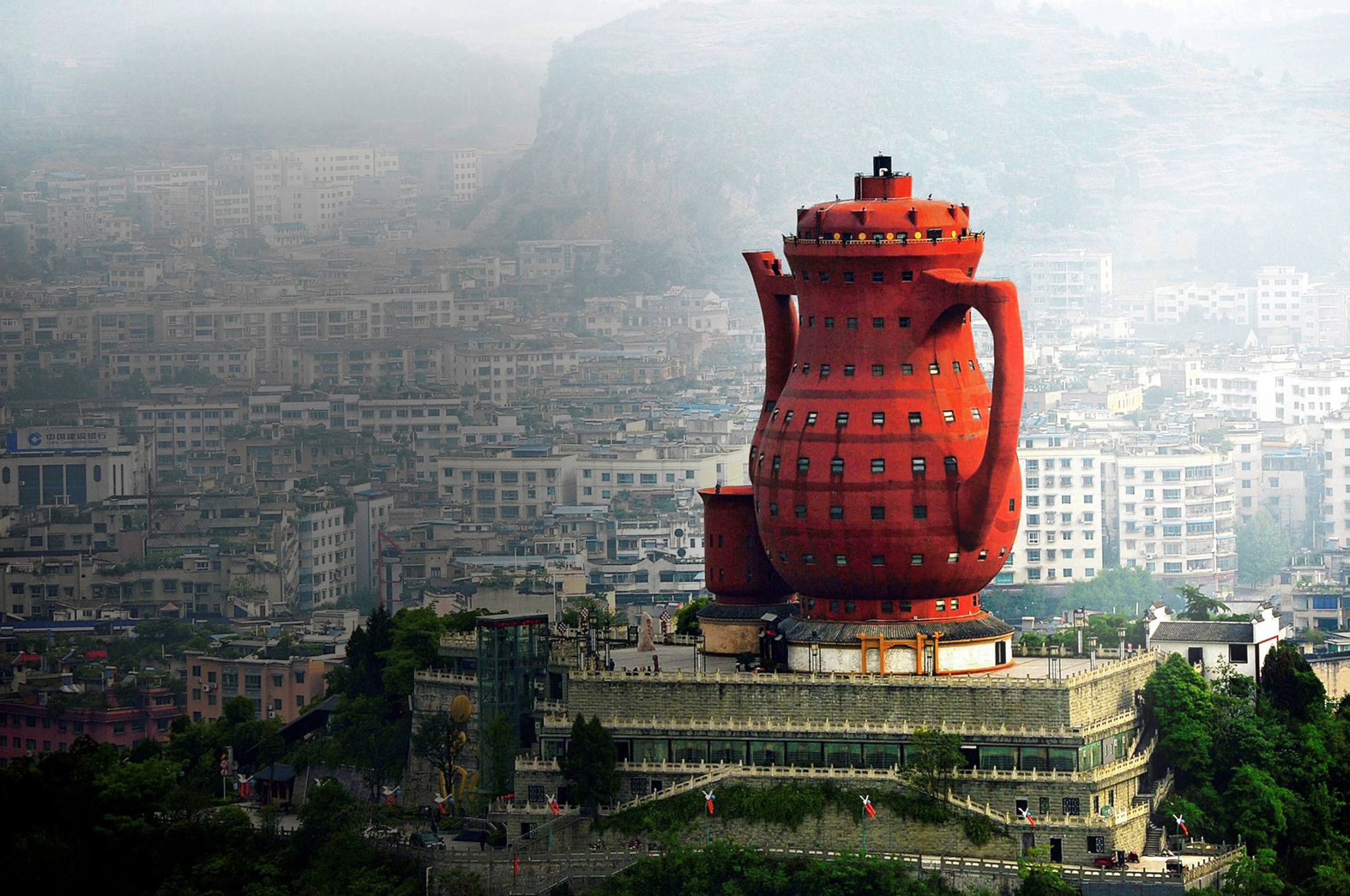Округ Мейтан в китайской провинции Гуйчжоу считается родиной китайского листового чая, который по-прежнему является главной сельскохозяйственной культурой региона. В 2010 году был построен музей чая, который тут же попал в Книгу рекордов Гиннесса как крупнейший памятник чайнику. Высота здания составляет 73,8 метра, максимальный диаметр – 24 метра, площадь внутренних помещений – более 5000 м². В основании «чайника» разместился четырехзвездочный отель.