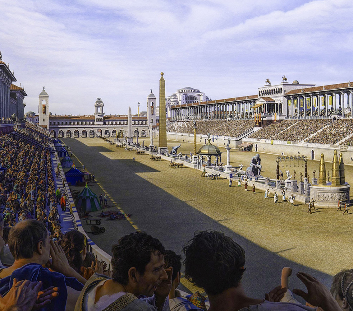 В Константинополе ипподромов было несколько. Особенно важную роль в жизни столицы и всей страны, играл Большой ипподром, примыкавший к Большому дворцу – главной резиденции византийских правителей. Большой ипподром мог вместить, по разным подсчетам и в разные периоды, от 40 000 до 80 000 человек. В первой половине VI века население столицы достигало от 375 до 500 тысяч человек, то есть как минимум каждый десятый горожанин мог попасть туда на гонки колесниц. Десятки тысяч константинопольцев регулярно видели императора: он тоже посещал скачки. На ипподроме жители могли обратиться к нему напрямую. Отвечал им не лично правитель, а его представитель, мандатор, стоявший перед императорской ложей. Ипподром как место встречи власти и подданных стал важнейшим центром общественной жизни.