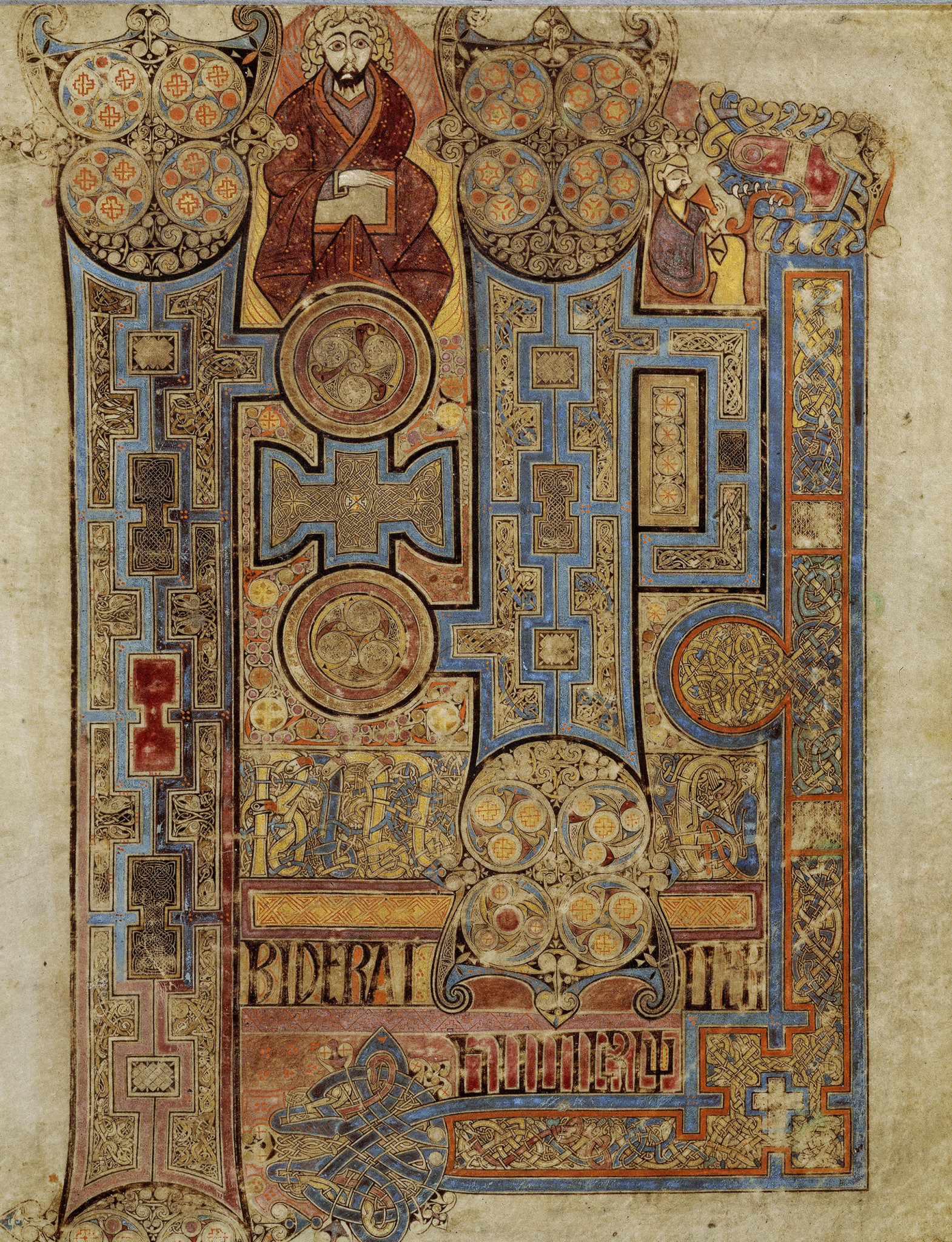 Келлская книга – парадная рукопись большого размера, в ней 680 страниц; она была предназначена не для повседневного использования, а для торжественных богослужений и украшения алтаря. Основную часть манускрипта составляют четыре канонических Евангелия на латинском языке. Первая страница Евангелия от Иоанна, одна из самых роскошно украшенных, – пример инициальной страницы, от латинского initialis – «начальный». На таких листах помещали орнаментированные фрагменты текста Священного Писания; и буквы, и промежутки между ними, и все пространство были густо заполнены узорами.