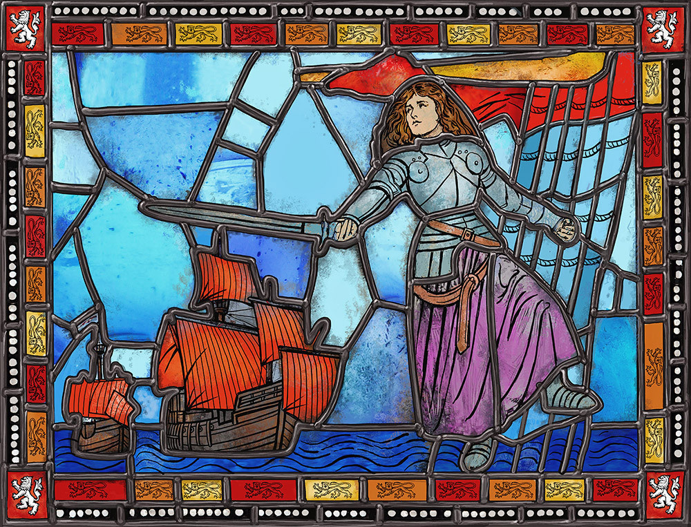 В Нанте есть улица Пиратки Жанны, улицу имени Жанны де Бельвиль можно найти в бретонских городах Кемпере и Пасе, а о замке де Клиссон рассказывают легенду, будто в нем обитает призрак этой средневековой дамы. О воинственной красавице с разбитым сердцем, посвятившей себя отмщению французской короне за загубленное семейное счастье, сочиняли поэмы и романы, публиковали даже комиксы. По преданию, она назвала корабль «Мое возмездие», покрасила паруса в кровавый красный и почти никого не оставляла в живых на захваченных судах… Реальная Жанна де Бельвиль отличалась от легендарной, но тоже была личностью незаурядной.