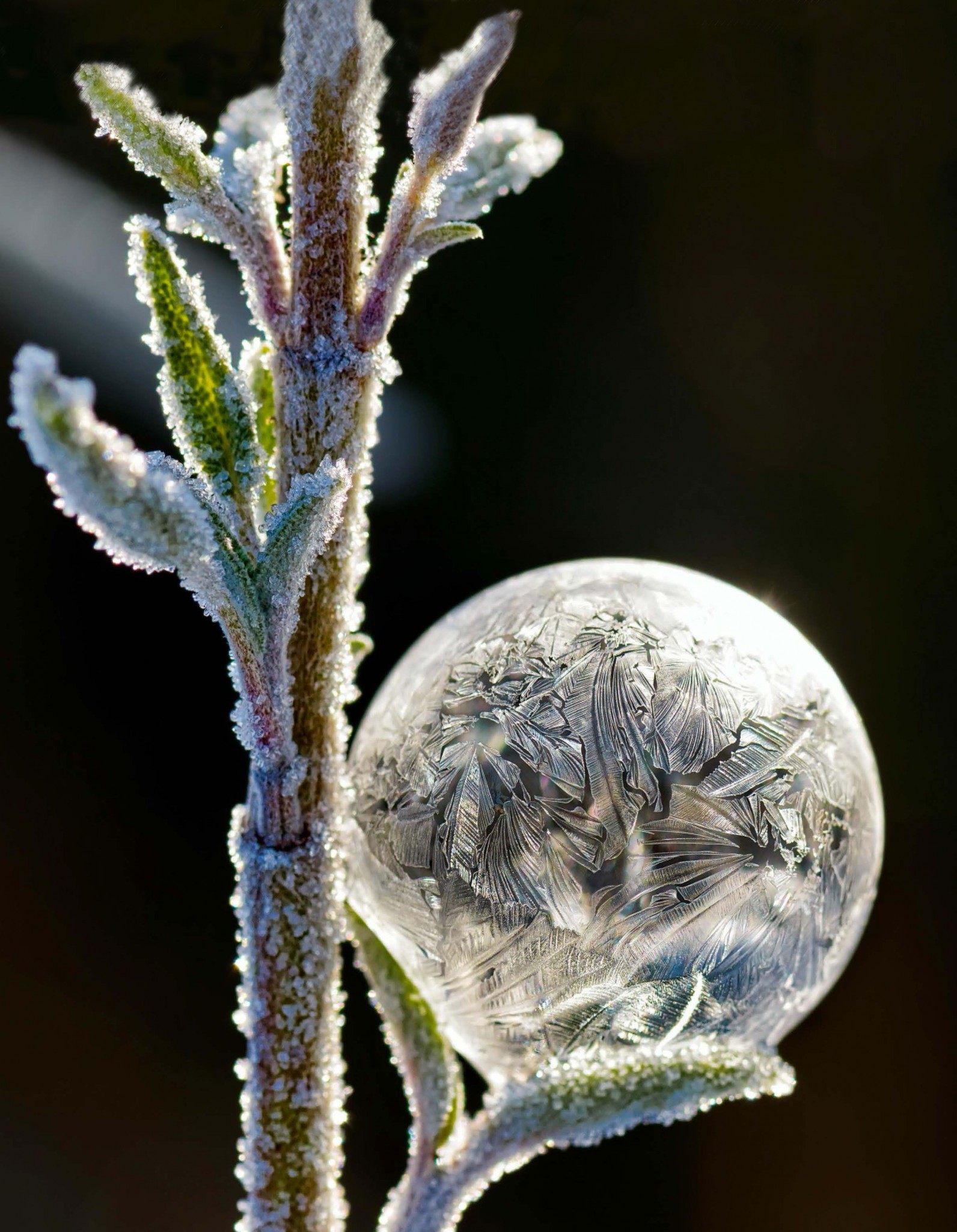 Слово «вечность», которое Кай выкладывал в палатах Снежной королевы, — пожалуй, самое уместное для букв изо льда. Для воздушных, быстро исчезающих мыльных пузырей лучше подходит «мгновение». Но зима позволяет соединить эти противоположности, получив изящные и хрупкие кристаллические сферы. В морозный день осторожно усадите мыльный пузырь на заснеженную поверхность, и он быстро зарастет крошечными ледышками — мимолетными, как дыхание, и холодными, как вечность.