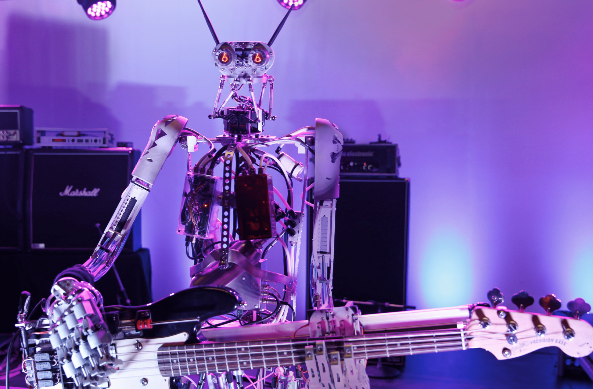Из роботов составлена целая группа под названием Compressorhead. Основанный в 2013 году коллектив базируется в Берлине и включает шесть участников. У гитариста с «артистическим псевдонимом» Fingers («пальцы», англ.) 78 пальцев, а у барабанщика четыре руки. Роботы сделаны из переработанного металлолома, что предопределило стиль группы – хеви-метал.
