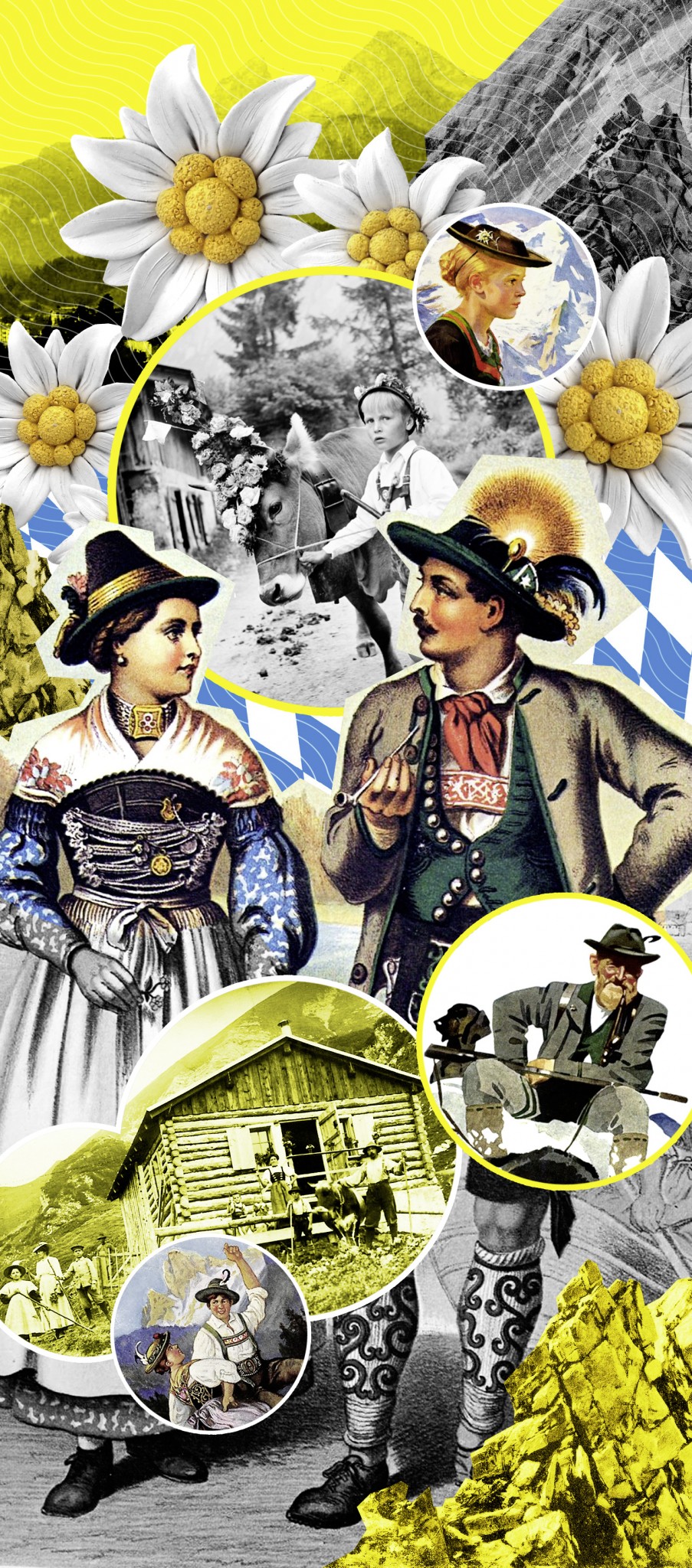 Жители Баварских гор составляют здоровое, сильное племя, в котором видно странное сочетание вялости, добродушия, наивности, грубости и глубокой религиозности… Простое обещание здесь исполняют так же свято, как клятву. Оригинальному характеру альпийца соответствует и оригинальность его одежды, которая еще поныне сохранилась в своем первозданном виде. Голова покрыта шляпою, которая украшена перьями и так называемою бородою серны. Такие шляпы носят и мужчины, и женщины. Рукава рубашки широки, а кафтан обыкновенно закинут за плечи. Кожаные штаны внизу не перевязаны, а на икры надеты чулки, не обувающие ступней. Широкий кожаный пояс украшен вышитыми животными и деревьями; зеленые подтяжки отчасти закрывают грудь, на которой лежат концы шейного платка, легко накинутого на шею и продернутого сквозь кольцо. Одеяние дополняют огромные башмаки с деревянною подошвою толщиною в один дюйм и с большими железными гвоздями.