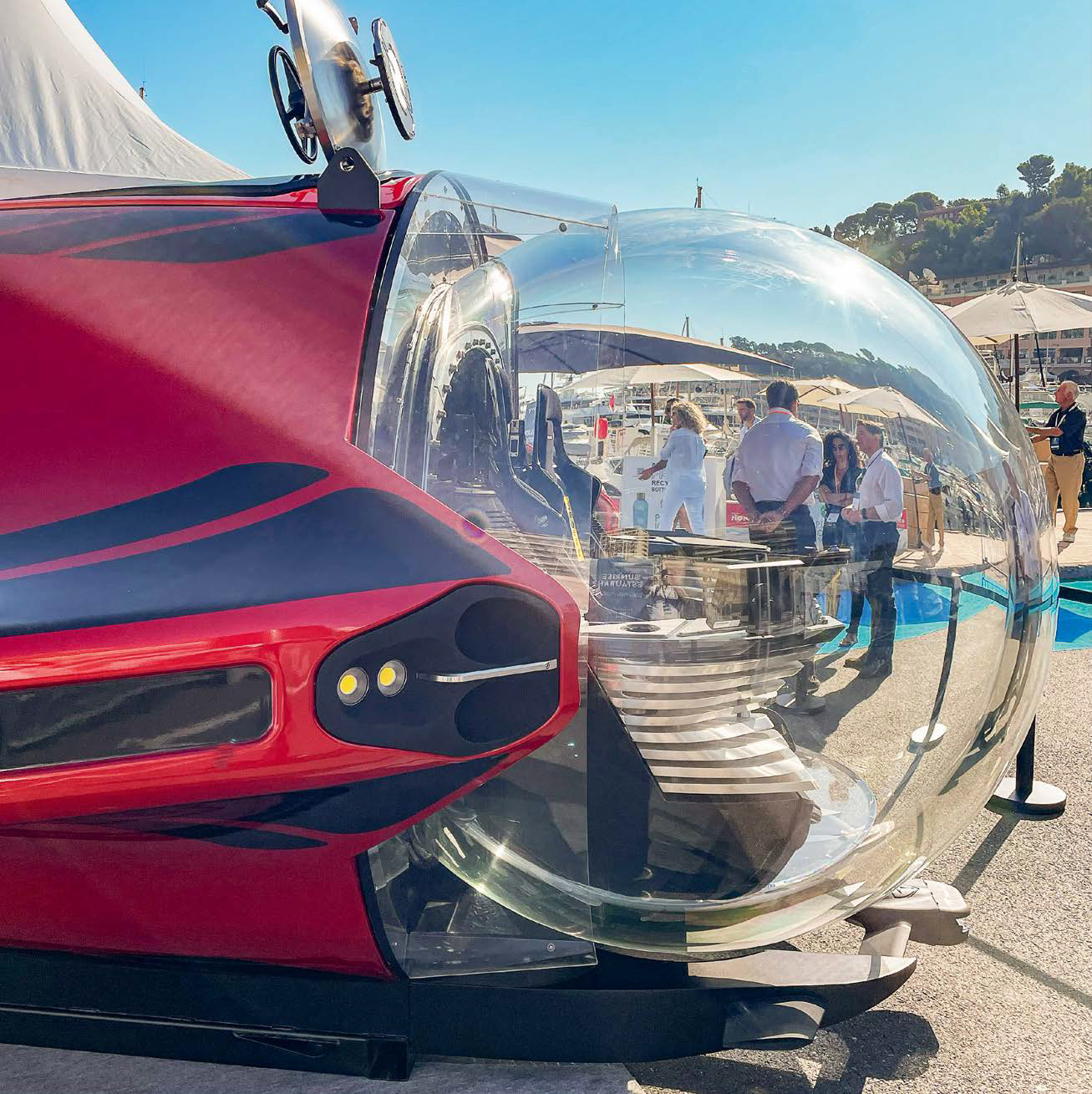 Тем не менее компания U-Boat Worx, один из лидеров рынка компактных подводных лодок, в последнее время взяла высокий темп и чуть ли не дважды в год показывает новую модель. Так, в этот раз она привезла на Monaco Yacht Show трехместную Super Sub, которая довольно сильно отличается от других ее лодок. Это хорошо видно уже по характерной форме корпуса, чем‑то напоминающего рачка-циклопа. Четыре движителя кучно собраны в корме, явно намекая на то, что Super Sub создана для перемещения в бездне не только по вертикали. И довольно быстро: при суммарной мощности электромоторов 100 кВт лодка способна развивать в толще воды до 10 узлов, и это ее основной козырь.